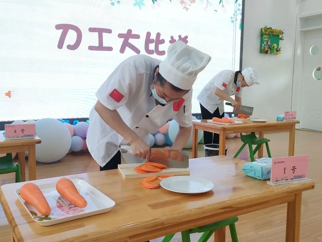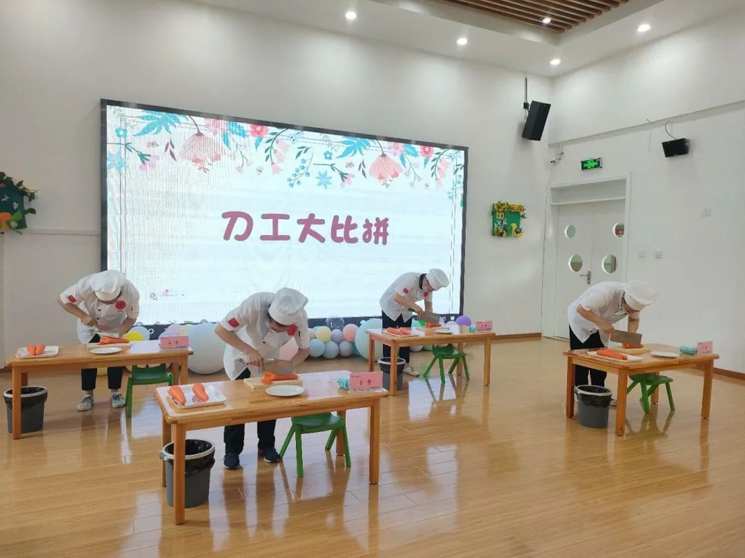 刀工比赛考验的不仅是厨房工作人员的刀功,更考察了厨师们对不同年龄段幼儿咀嚼能力的掌握。厨房人员是幼儿餐点的直接参与和实施者,要对不同年龄段幼儿的生理特点熟知于心,才能切出大小适合、形状均匀的菜品。