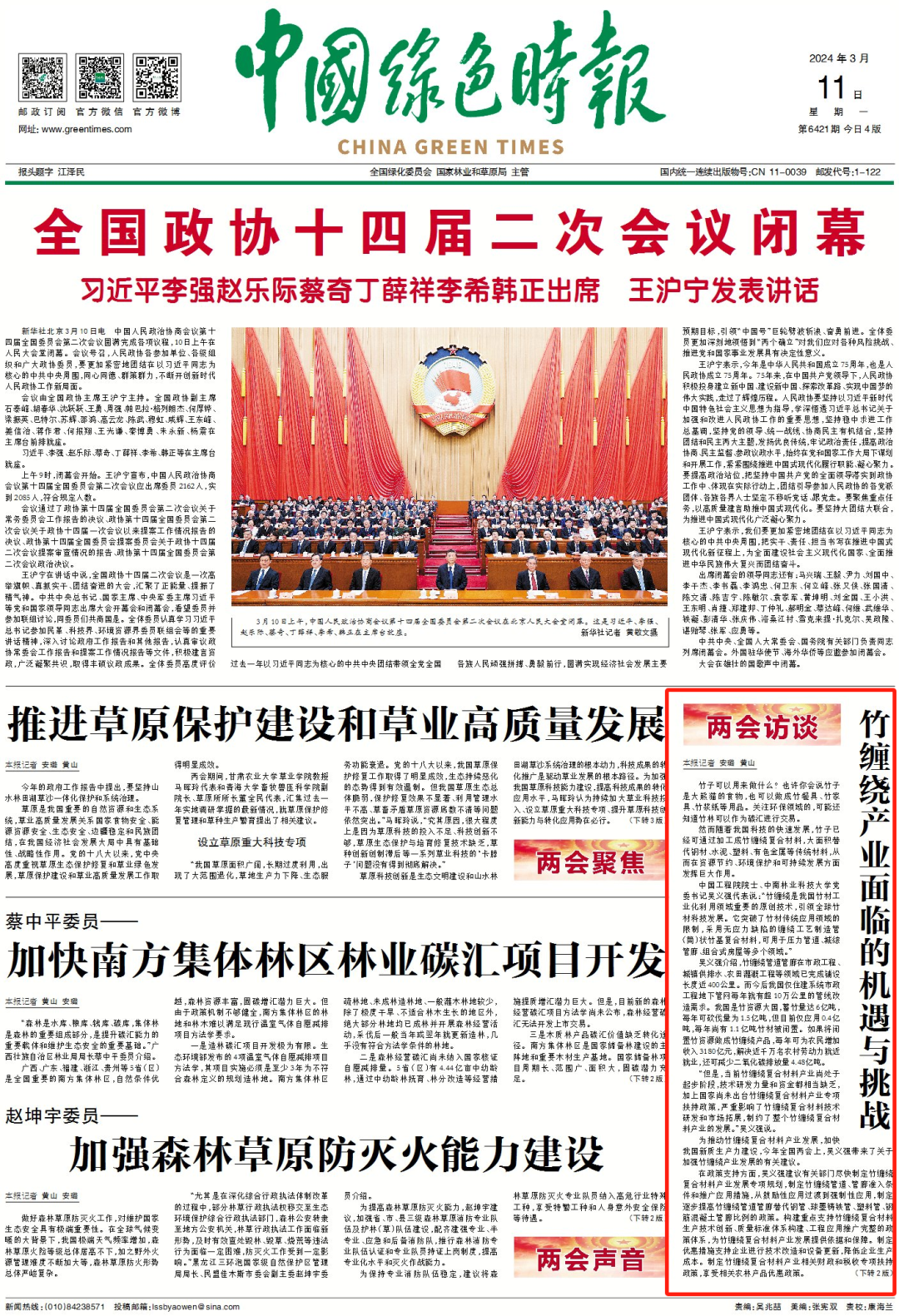 为推动竹缠绕复合材料产业发展,加快我国新质生产力建设,今年全国两会上,吴义强带来了关于加强竹缠绕产业发展的有关建议。