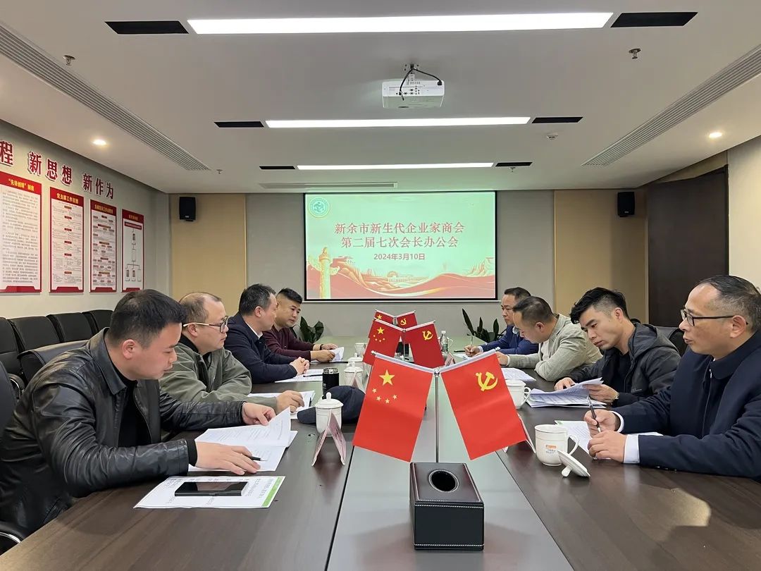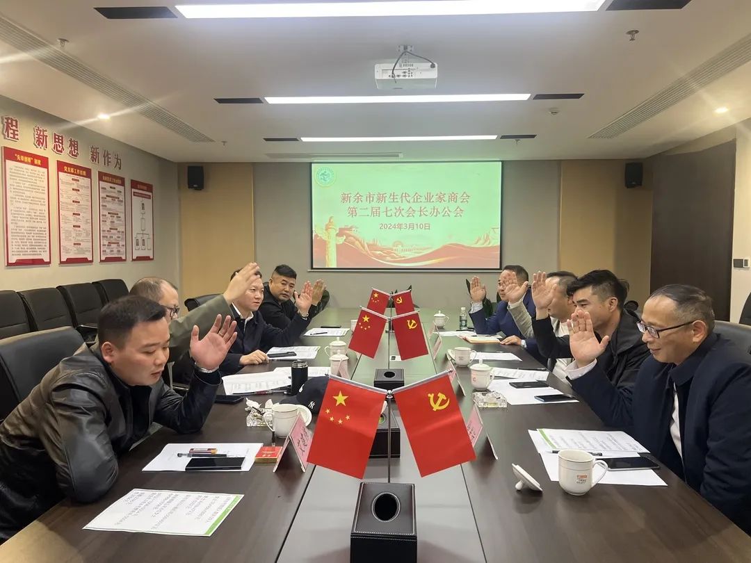 2024年3月10日,新余市新生代企业家商会召开第二届七次会长办公会。会议由会长艾磊华主持,商会党支部书记、副会长欧阳平根,副会长艾建伟、刘强、黄宇平、傅卫锋参加会议,执行秘书长李火芽、监事长徐光远列席会议。