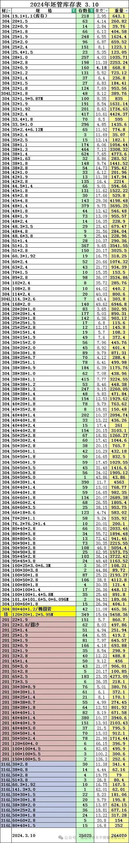 佛山市中天不锈钢有限公司(3月11日库存)