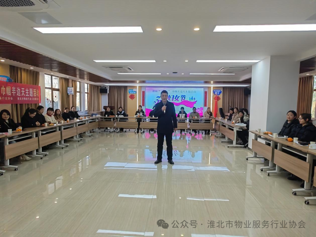 他强调,女性职工作为物业服务行业的主力军,你们用青春、汗水、智慧、真情和无私的奉献,默默的为城市建设、为业主的安宁贡献着自己的力量。作为从事物业服务行业的新时代女性,要紧跟时代的步伐和节拍,尽展巾帼风采,以更加饱满的热情投入到工作岗位,投入到物业服务行业高质量发展中,在新征程中再建新功,为“五宜”淮北建设添砖加瓦!