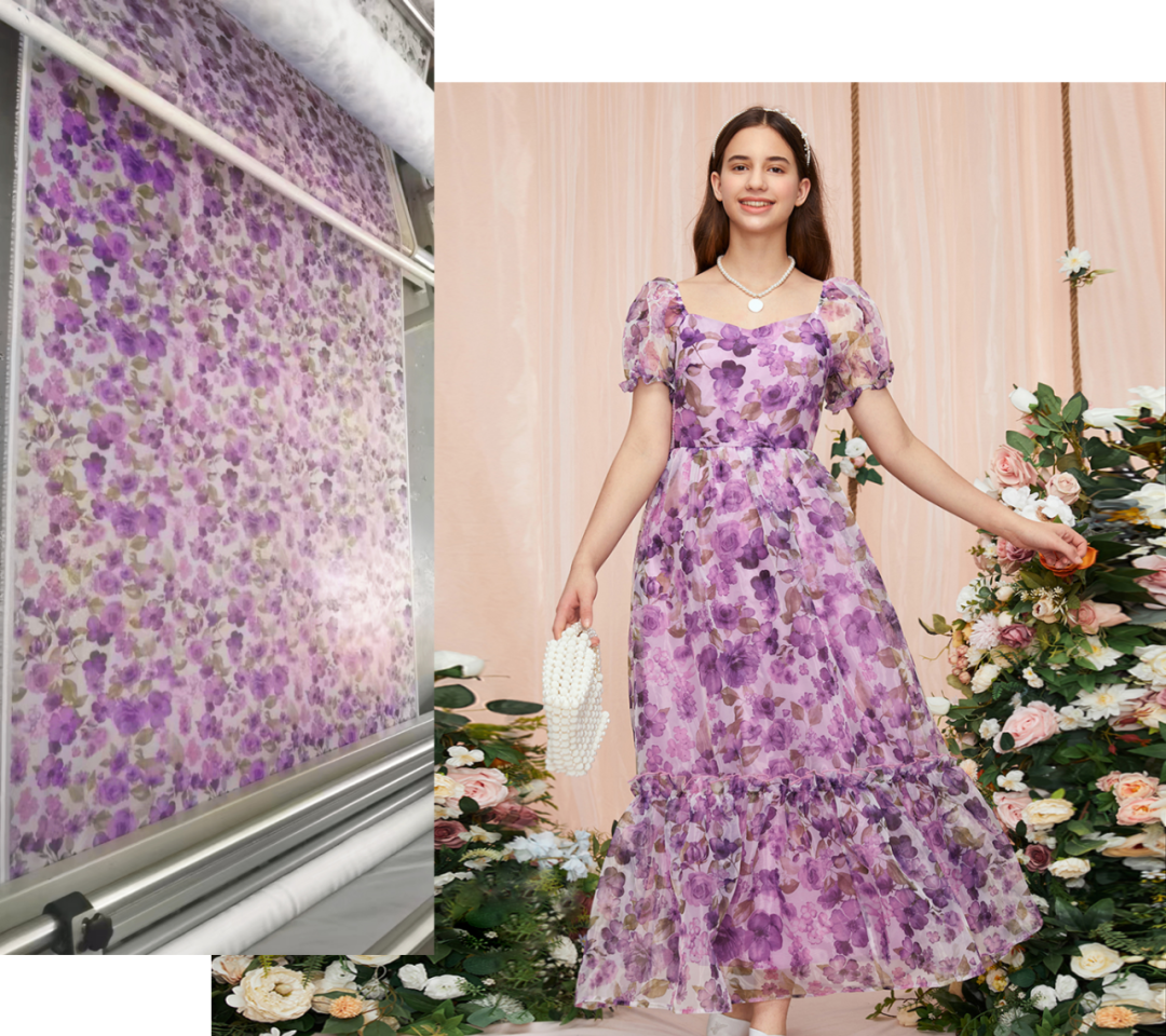 值得一提的是,在该项工艺技术中应用的墨水也是SHEIN自主专利开发的环保墨水,具有高固色率、高色牢度特点。相比普通墨水,该环保活性墨水可以有效减少助剂的使用,减少水电汽使用,减少污水排放。