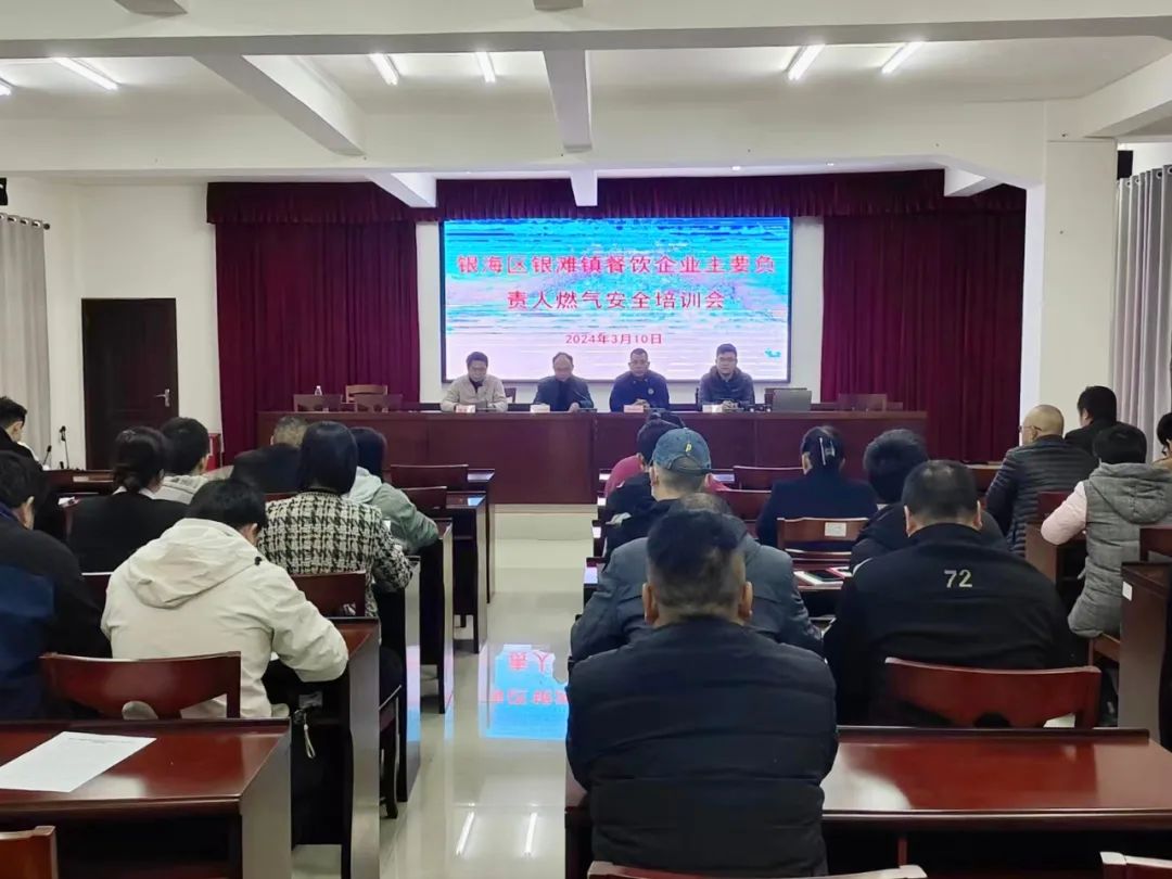 为全面提升我镇餐饮企业主要负责人燃气安全风险防控意识和安全管理能力,有效遏制各类安全事故发生,保障人民群众生命财产安全。3月10日,银滩镇联合银海区城管交通局、区消防救援大队、市管道燃气公司组织召开银滩镇餐饮企业主要负责人燃气安全培训会。本次培训采取“视频学习+现场实操+模拟演练”的模式,辖区使用燃气的餐饮企业负责人共90余人参训。