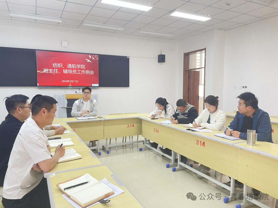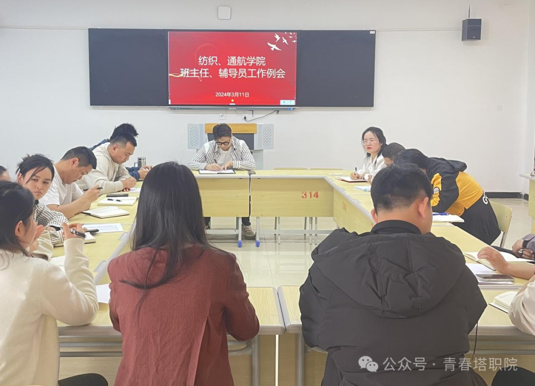 为保证学生管理工作有序开展,2024年3月11日,纺织服装学院、通航产业学院召开班主任、辅导员工作例会,会议由纺织服装学院、通航产业学院党支部书记管志远主持,分院学工部主任王蕊冉及全体班主任、辅导员参加会议。