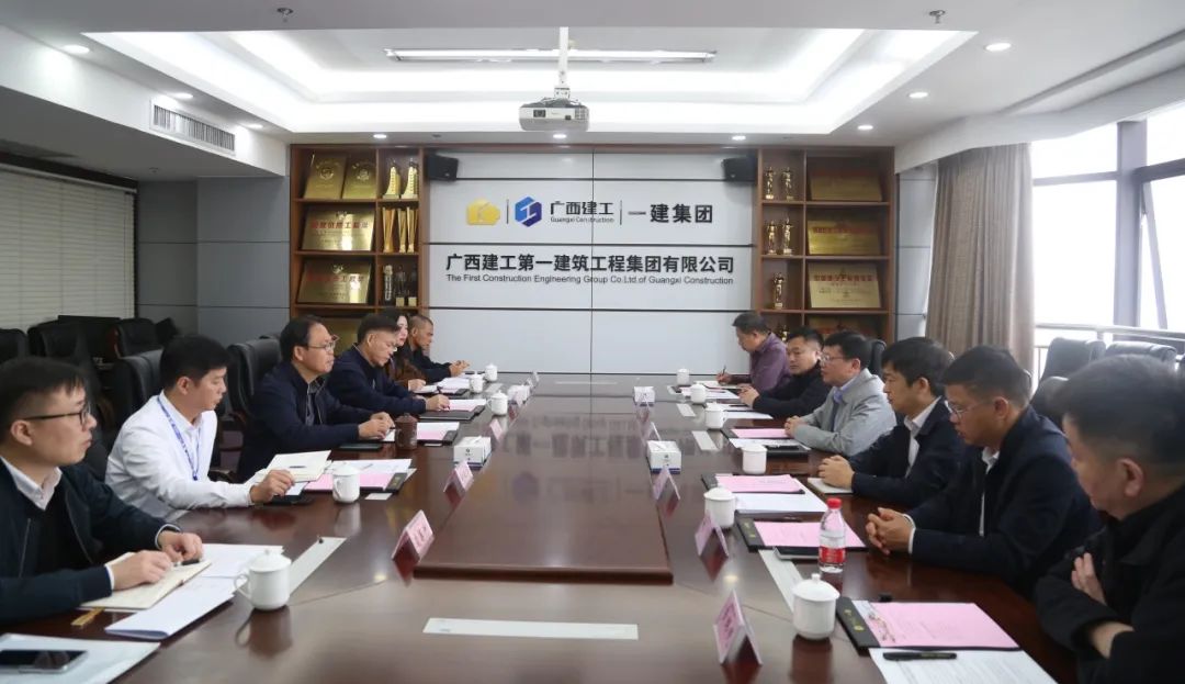 3月7日,广西建工第一建筑工程集团有限公司副总经理王治滨,在一建大厦2605会议室,与中储粮集团湖北分公司建库办主任张富胜举行工作会谈。