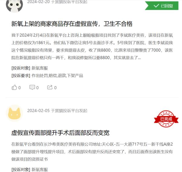 据黑猫投诉平台显示,有关新氧的投诉达549条,涉及虚假宣传、卫生不合格、操作不当导致过敏、资质不合规、退款难等诸多问题。