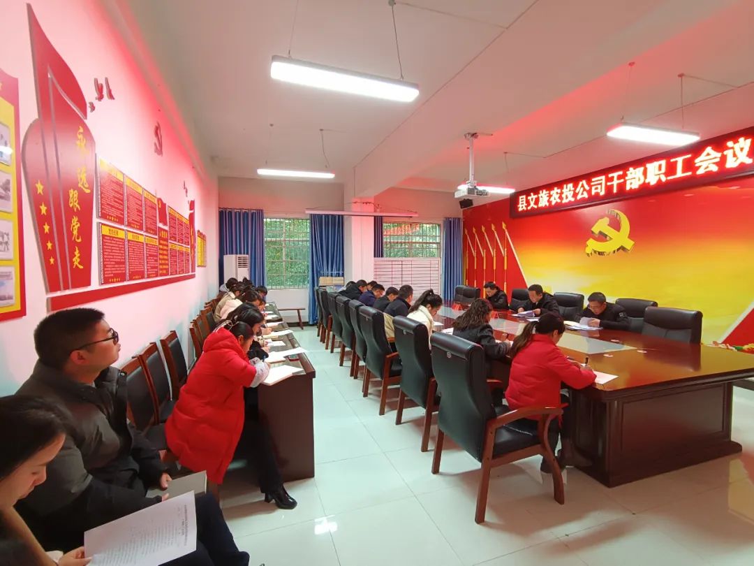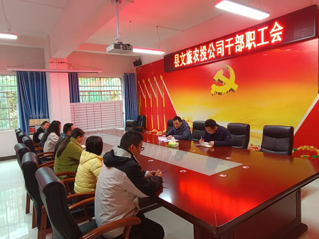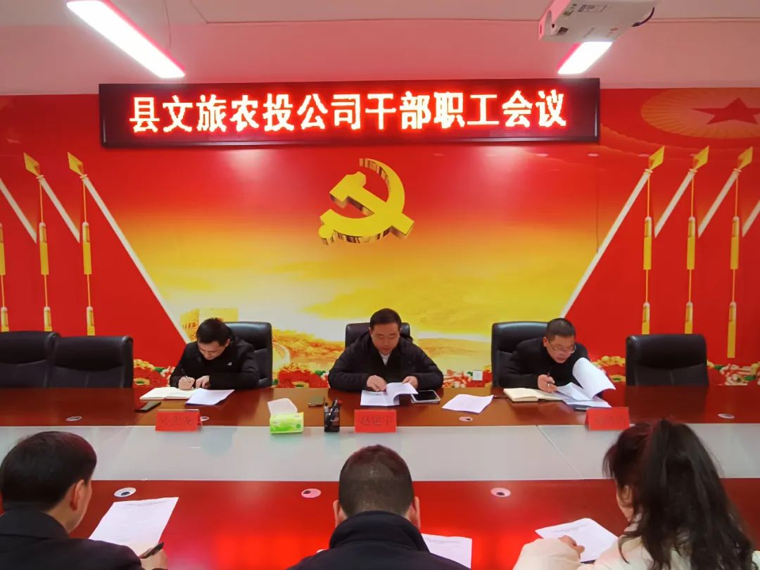 县文旅农投公司在会议室召开干部职工会议,会议由公司董事长赵建宇同志主持,全体干部职工参会,会议传达学习了习近平总书记近期重要讲话精神,中央、省、市会议及相关文件精神,并研究贯彻落实意见。