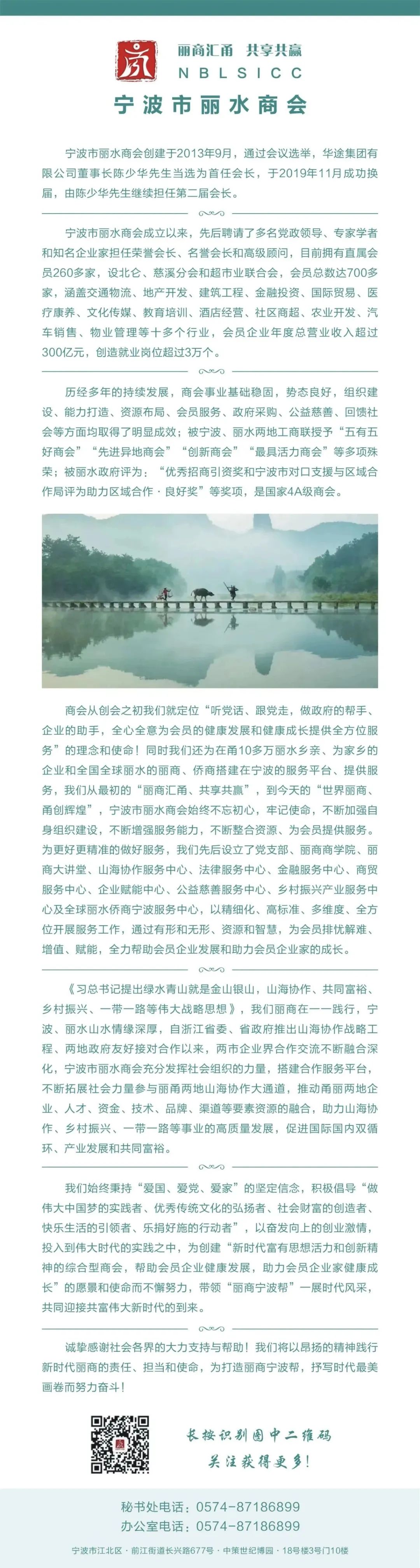 吴局还对丽水商会近年的发展高度评价和赞赏,希望商会作为丽水宁波两地的桥梁和纽带,为山海协作、乡村振兴以及共同富裕作出更大贡献。
