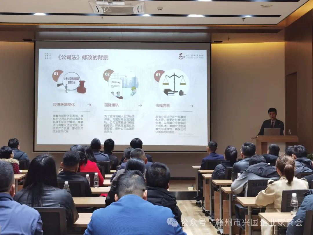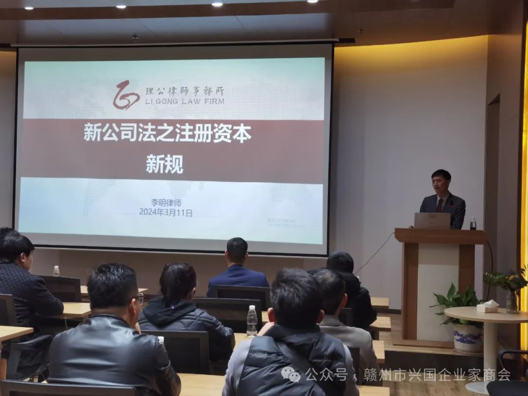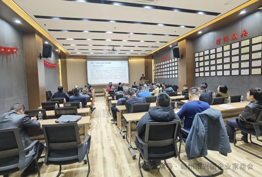 3月11日下午,赣州市兴国企业家商会在江西理公律师事务所会议室组织开展2024年龙年第一场以新《公司法》和人居环境学为主题的讲座,商会50余人参加了此次讲座和团聚活动。