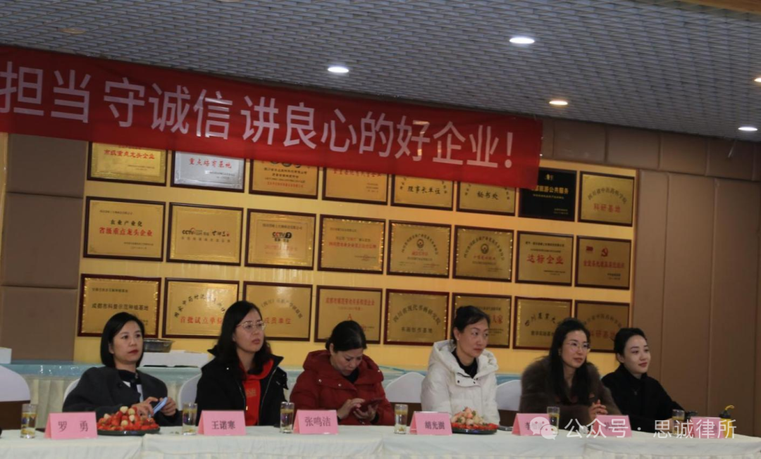 2024年3月5日,四川思诚律师事务所主任罗勇、王诺寒、张鸣洁律师受邀参加四川省浙江商会女企业家俱乐部“与美丽为伴,携幸福同行”三八妇女节主题活动。