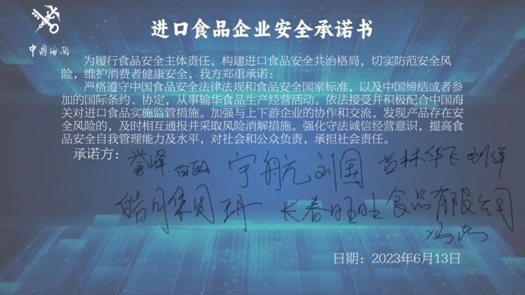 参会企业代表共同签署《进口食品企业安全承诺书》。
