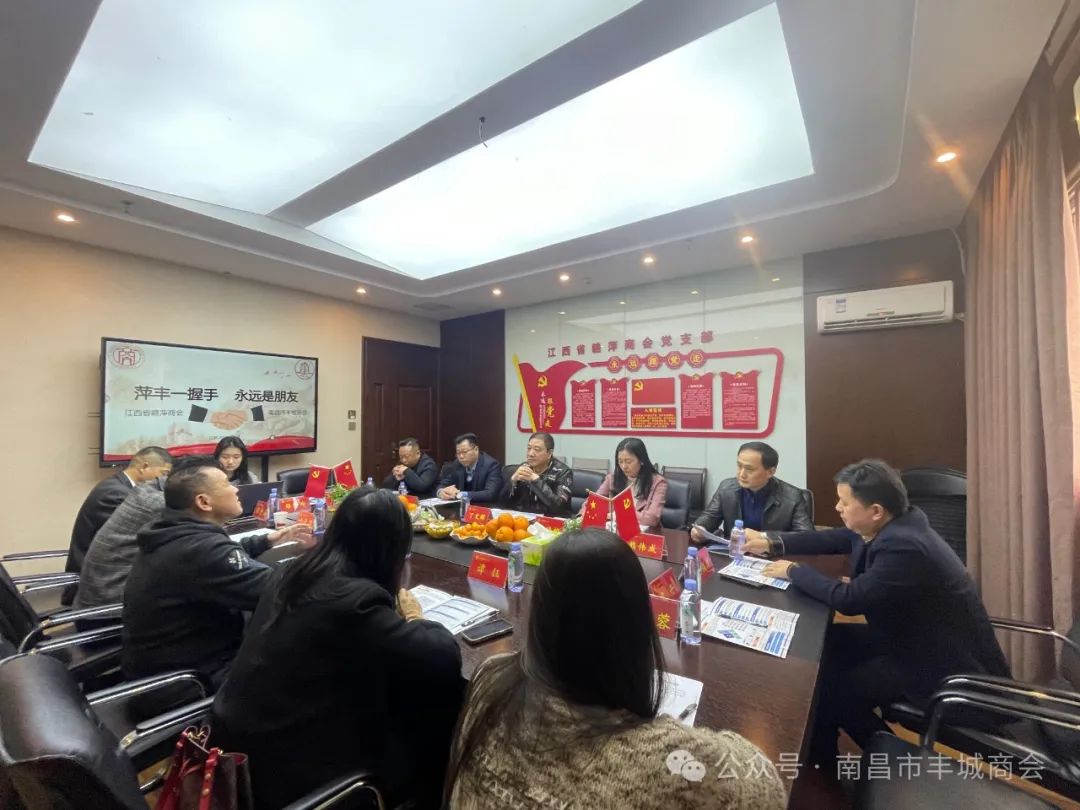 人走进了江西省赣萍商会会议室,进行了一场富有成果的交流会。参会代表包括南昌市丰城商会会长丁文辉