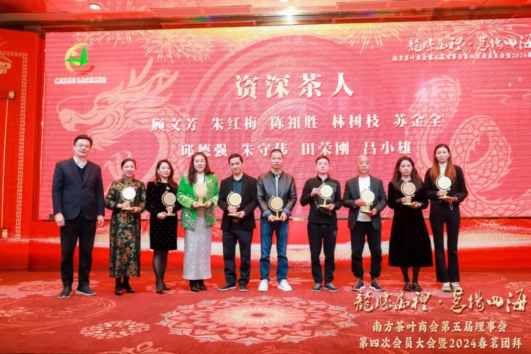 一纸证书,书不尽茶情似海,枚枚勋章,彰显匠人精神,值3月8日举办第五届理事会第四次会员大会暨2024春茗团拜活动,谨以杯中茶,致敬老茶人,勉励后进者,愿老茶人老前辈初心不改,匠人之心赓续传承。颁奖“资深老茶人”、“卓越老茶人”及”先进茶企”,它们从地域、领域、行业贡献等维度都突具代表性,也是茶行业领域的杰出代表。