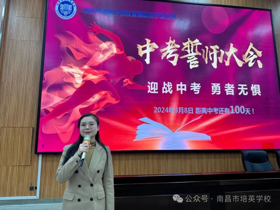 中考冲刺的号角已经吹响,只有奋勇拼搏才能不负韶华。3月8日下午,南昌市培英学校教育集团彭桥路校区在学校多功能报告厅隆重举行2024届初三中考百日誓师大会,为全体初三学子鼓劲加油。校领导班子成员、中学教务处、初三全体师生及部分家长代表参加了本次活动。