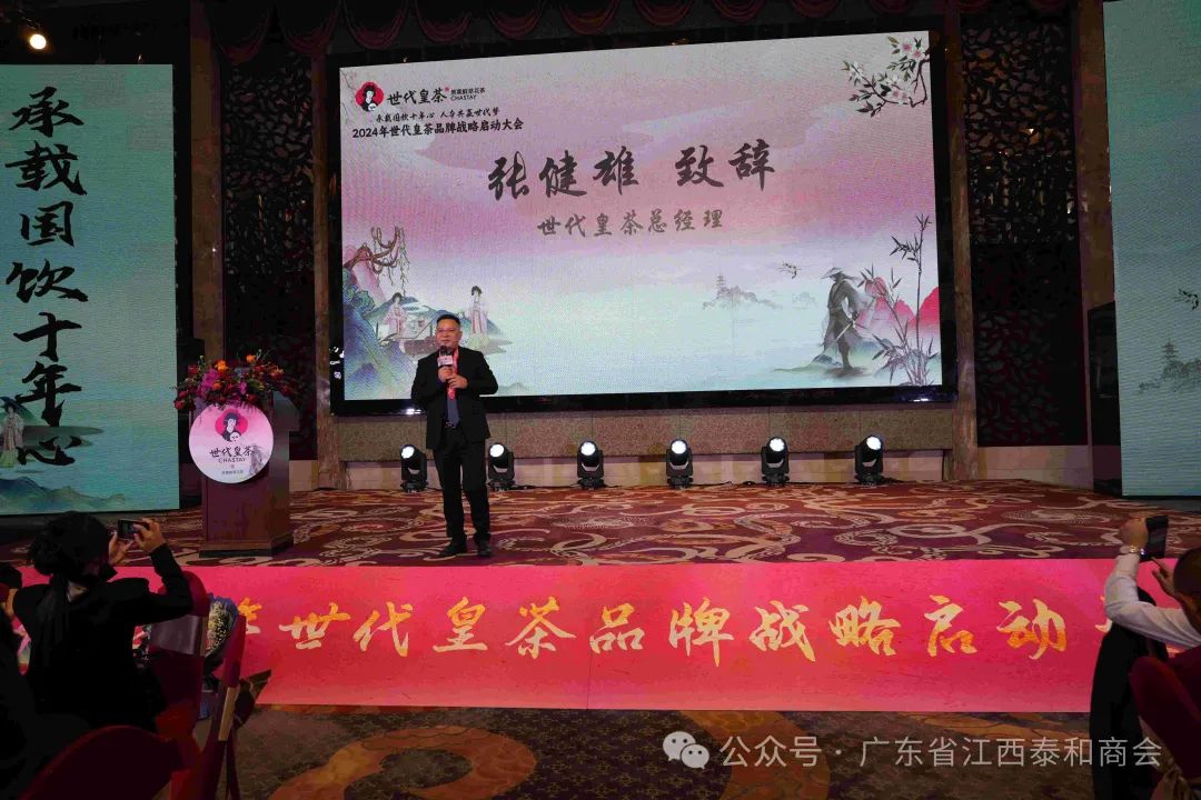 承载国饮十年心,人本共赢世代梦。3月6日,广东省江西泰和商会常务副会长单位——广东国饮管理有限公司在东莞市厚街镇厚街国际大酒店隆重举办2024世代皇茶品牌战略启动大会,商会名誉会长杨为民、执行会长肖桑文、轮值会长匡思鹏、常务副会长兼秘书长熊志坚、常务副会长兼深圳分会会长刘飞龙、常务副会长兼东莞分会会长肖志平、常务副会长兼餐饮服务业联盟委员会主任委员张健雄、执行秘书长蒋慧民,理事胡志荣、肖仁云、张首珠等乡贤出席。