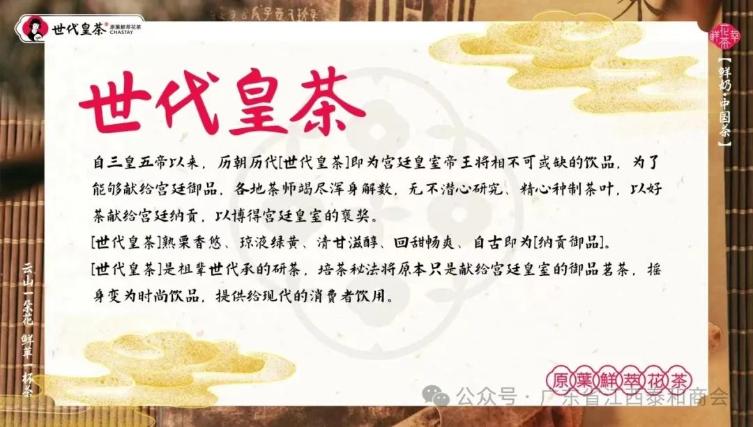常务副会长兼餐饮服务业联盟委员会主任委员、广东国饮管理有限公司董事长、世代皇茶品牌创始人张健雄到向现场媒体介绍到,本次战略启动会,是世代皇茶品牌发展历程中的一个重要里程碑。世代皇茶重新定义了品牌鲜活的人格,以原叶鲜萃花茶、鲜奶茶为核心发展方向的基础之上,从设计AI到产品定位、装修风格都有了翻天覆地的变化,并完美的将中国传统文化汉服等融合在了一起。