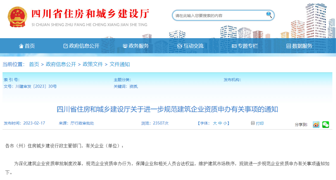 为深化建筑企业资质审批制度改革,规范企业资质申办行为,保障企业和相关人员合法权益,维护建筑市场秩序,近日,四川省住房和城乡建设厅发布通知,进一步规范企业资质申办有关事项。