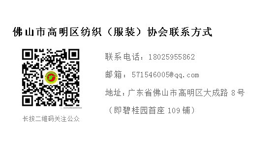 会员单位:佛山市芭丽雅羽绒制品有限公司,佛山市钊航科技有限公司,佛山市华羽思服装有限公司,佛山市凯洲化工有限公司, 佛山市忠实机电设备有限公司,佛山市新明翔纺织科技有限公司,佛山兆日辉科技有限公司