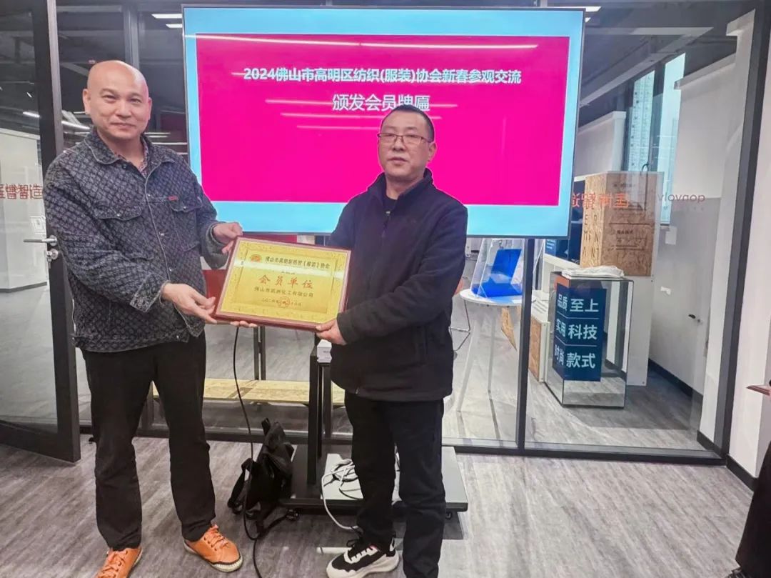 龙年开春之际,为搭建交流学习平台,共促行业升级发展,3月9日下午,我协会开展2024新春参观交流活动。我协会会长、实强纺织董事长林万明,执行会长、桦艺纺织总经理阳日江,常务副会长、南金纺织总经理李剑华,常务副会长、棉泰纺织总经理陈丽卿等40多人参加活动。活动期间,协会一行先后参观走访了广东溢维环境科技有限公司、广东匡敦科技有限公司、佛山市钊航科技有限公司,在匡敦科技公司进行交流座谈并颁发新进会员牌匾。