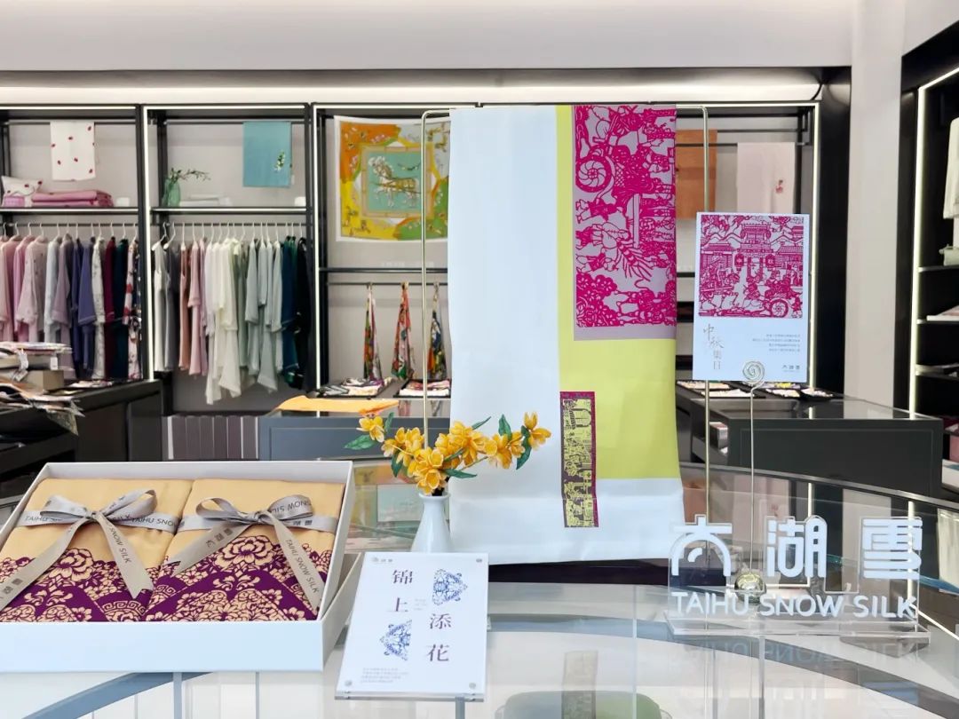 一直以来,太湖雪专注用匠心坚守“蚕丝”事业,以创意设计将中华传统文化、非遗技艺和江南丝绸文化充分融合,先后与苏州博物馆、大运河博物馆、颐和园、拙政园等开展跨界联名,衍生开发一系列兼具文化价值和时尚审美的丝绸文化精品。