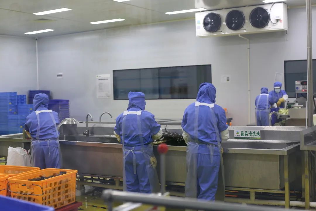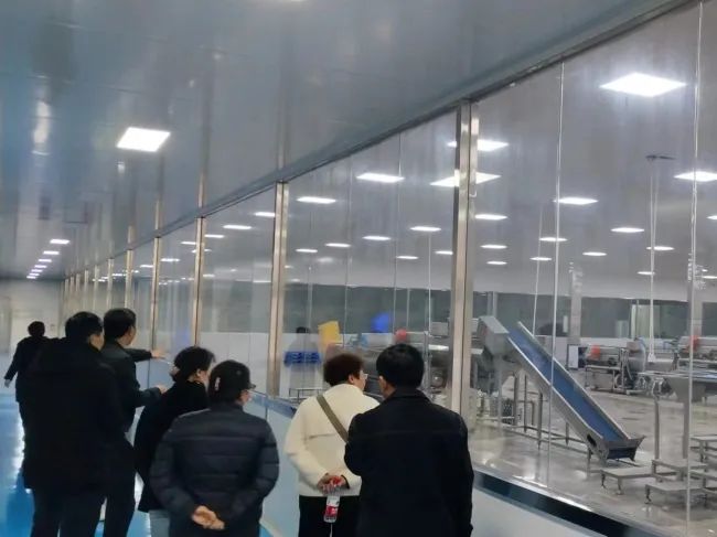 学校调研组参观了公司的净菜加工车间和加工流程,全面了解公司的整个生产加工配送环节。