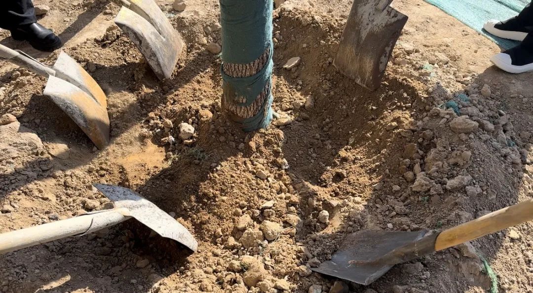 植树现场,大家热情饱满、分工合作,纷纷撸起袖子挥锹铲土、压实土层、提水浇灌……每一步都井然有序,现场洋溢出团结协作、奋发向上的氛围。经过一个上午的辛勤劳动,一棵棵满载希望的树苗迎风挺立,充满勃勃的生机与活力。