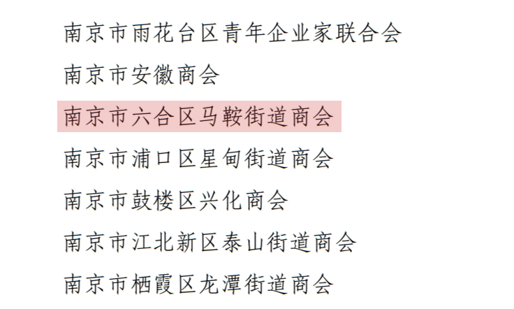 2015年10月,在街道党工委、区工商联的大力支持下,南京市马鞍街道商会成立,截至目前发展会员企业122家,产业涵盖智能制造、节能环保、新材料、建筑工程、现代农业、现代服务业等,一、二、三产融合发展框架已初步形成。区域内有矿业产业机电园、现代农业示范园等。马鞍街道商会始终以服务“两个健康”为方向,以“四好”商会创建为动力,坚持统战性、经济性、民间性的“三性统一”,发挥出桥梁纽带和助手作用。近年来,马鞍街道商会陆续获得江苏省“四好”商会、江苏省优秀商会等荣誉称号。