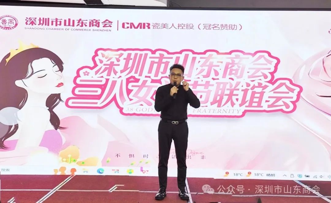 阳春三月艳阳天,巾帼相聚尽欢颜。为迎接第114个国际劳动妇女节,让女企业家度过一个充实愉快、富有意义的节日,让女同胞们感受到节日的温馨与商会的关怀,共赴春天之约,畅叙情谊,互致祝福。2024年3月8日下午,深圳市山东商会在山东大厦二楼山东发展·鲁深高质量融合发展中心成功举办以“健康人生 美丽风采”为主题的庆祝“三八”妇女节——“瓷美人”联谊活动。我会会长王立新,执行会长兼秘书长梁庆伟,副会长郭红菊、朱礼贵、王锴、张新英、孙宜斌等商会领导出席活动,并向全体女会员企业家送上节日的祝福。