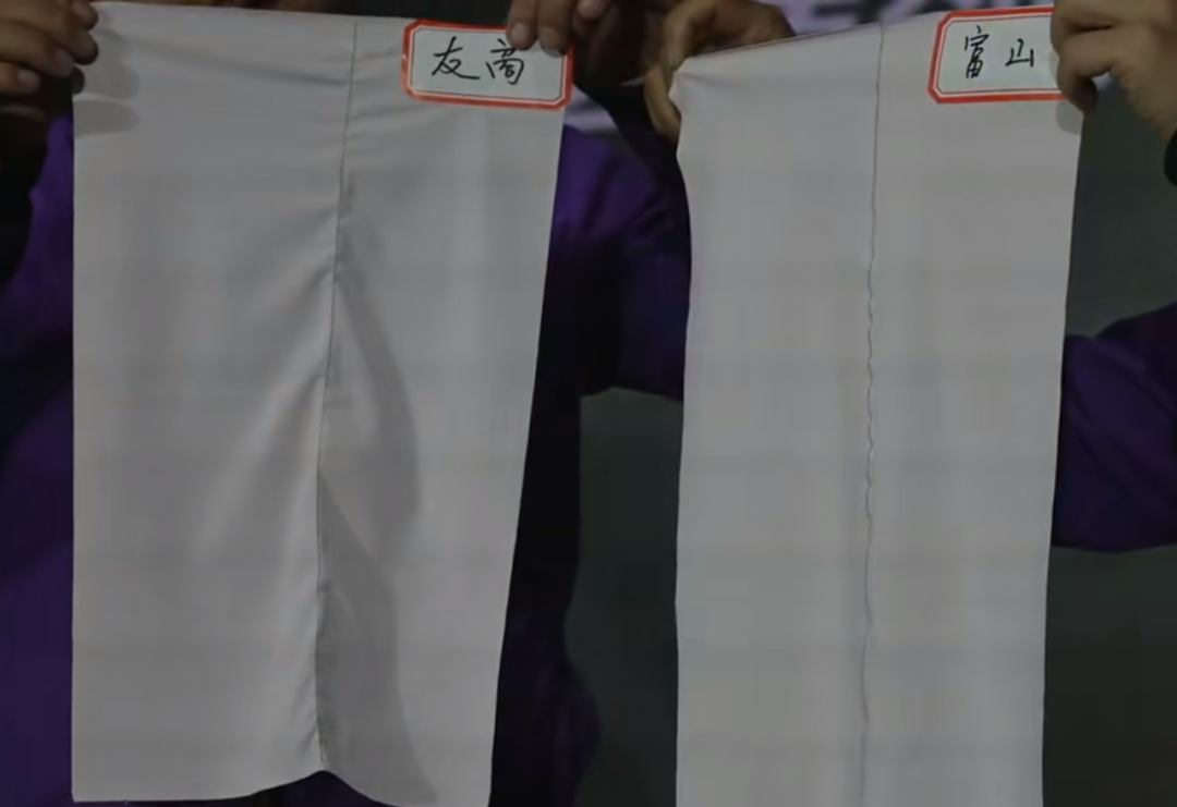 现场分别对十层牛仔布、皮肤衣布料和极薄的网纱布料进行了对比测试,两块同样的布料,在富山新一代智能缝纫机(包括9V平缝机和8V包缝机)和友商的机器上分别缝制,展现出来的效果对比一目了然。在现场两位来自服装企业的资深技术师傅的见证下,富山应用了智能夹线技术的缝纫机缝出的布料,不仅不起皱,而且线迹更平顺、美观。