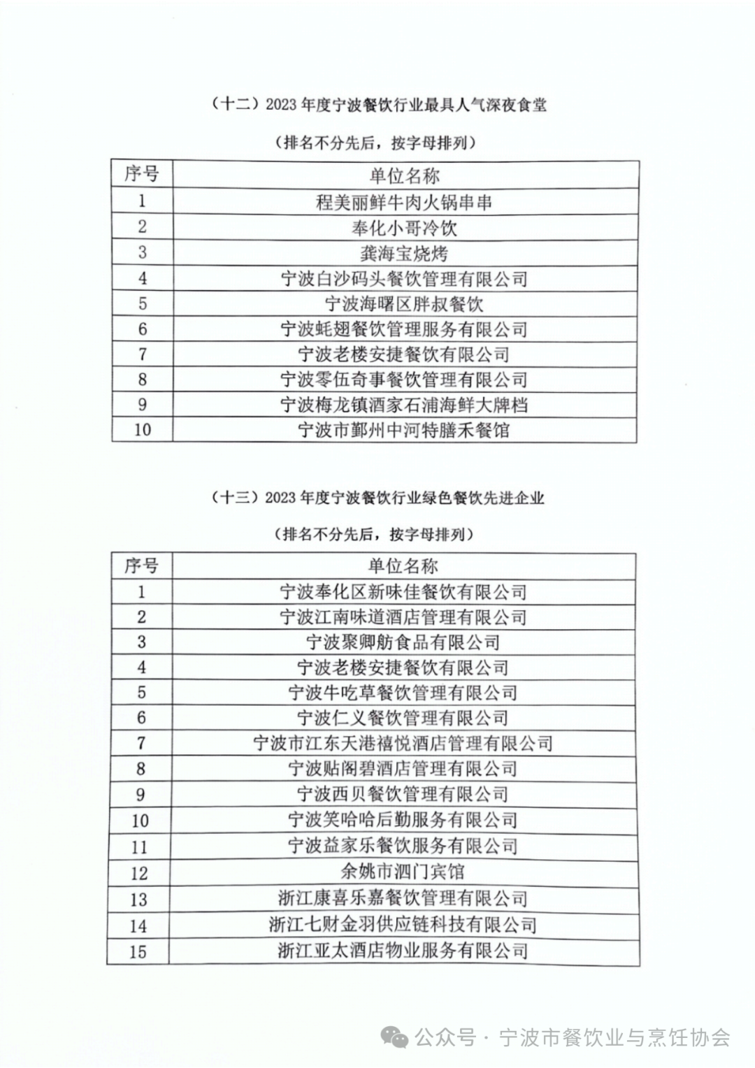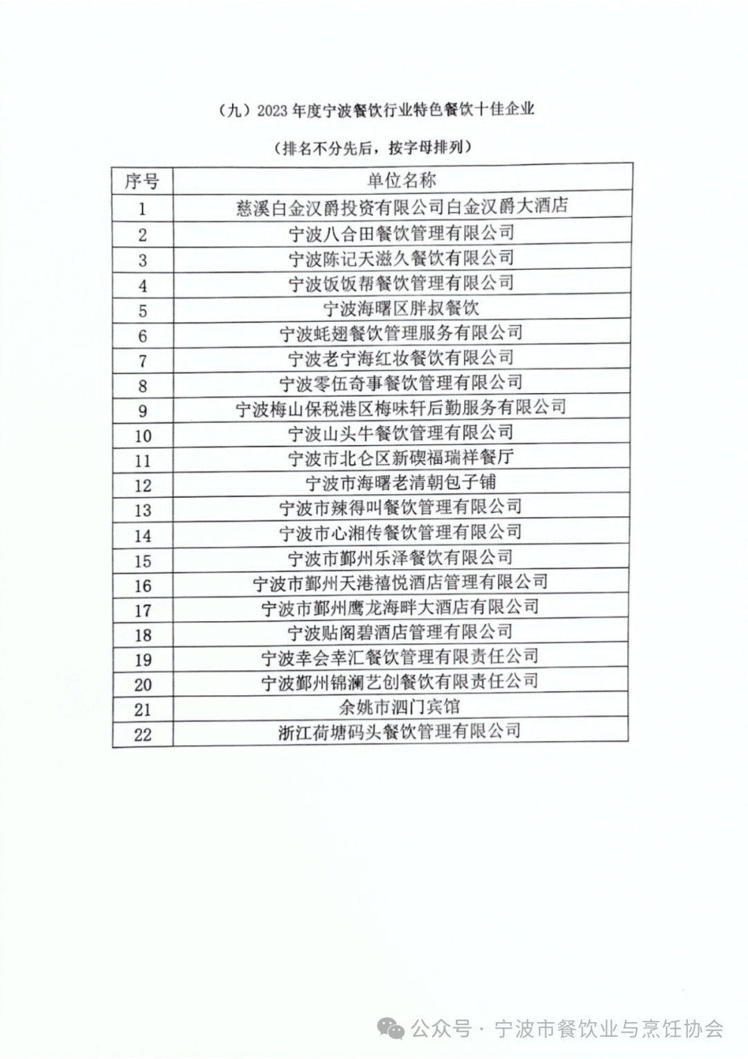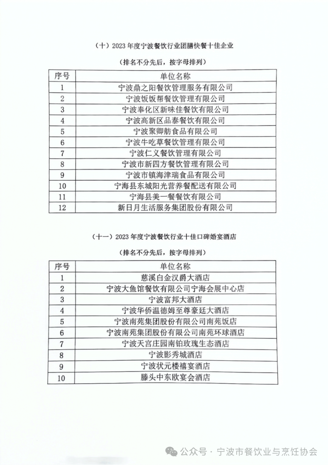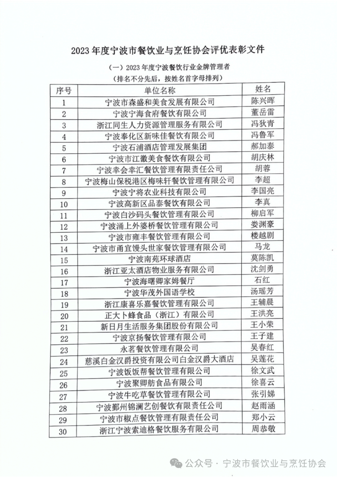 2023宁波餐饮行业评优活动表彰名单