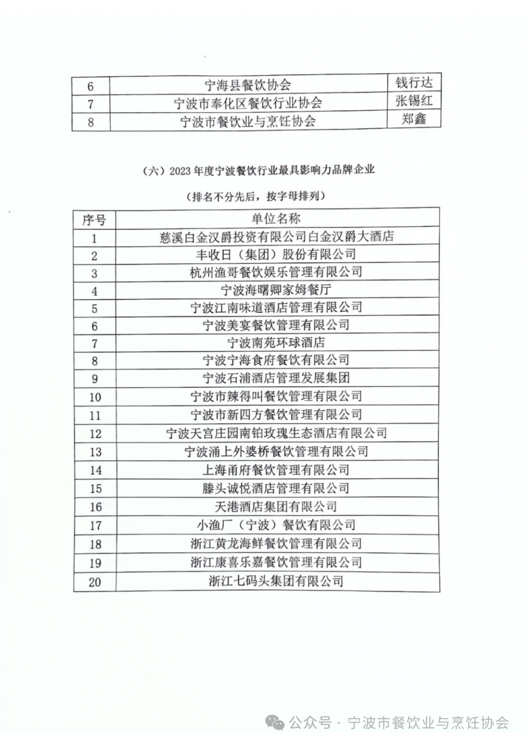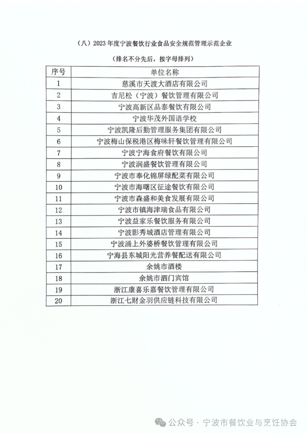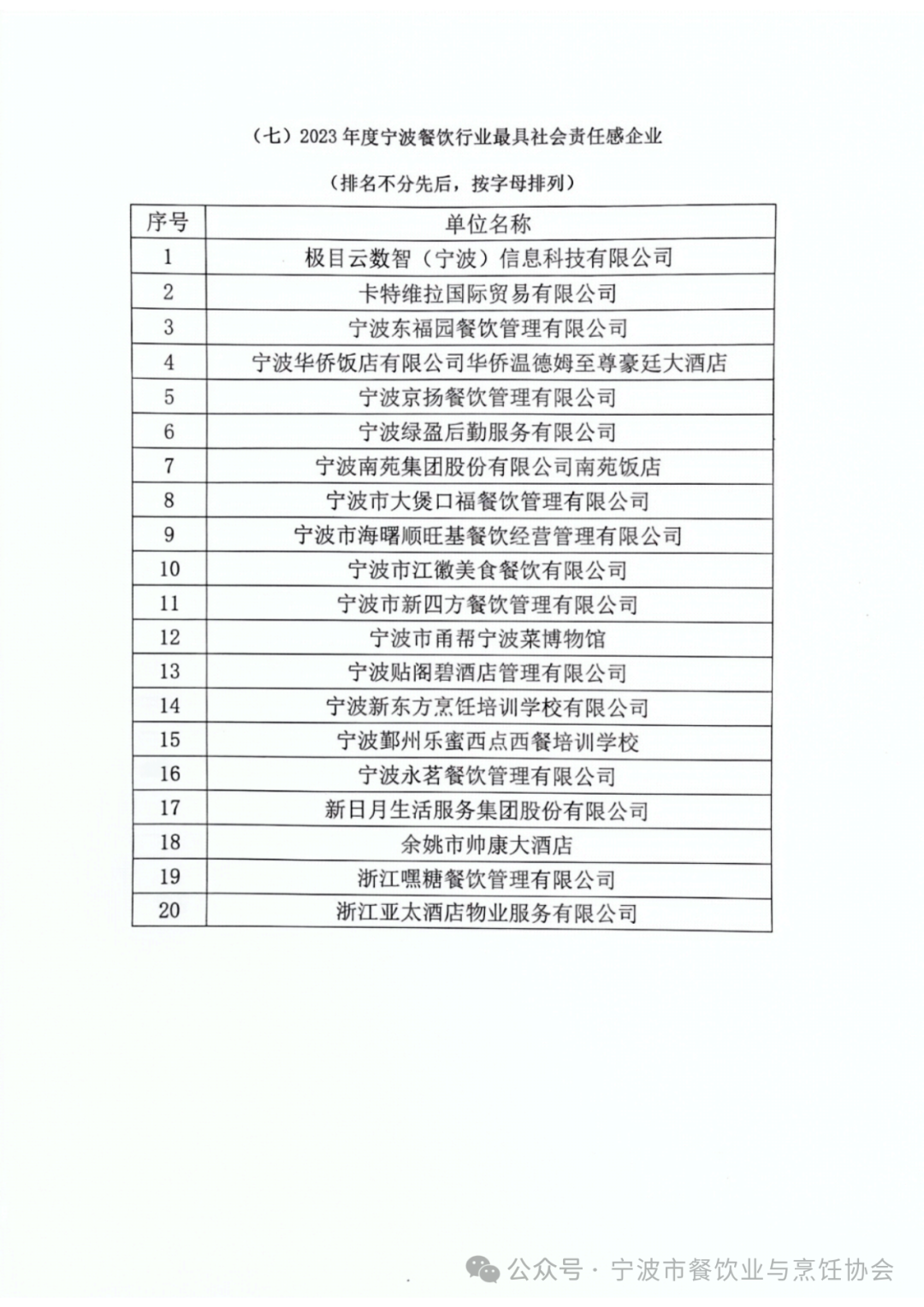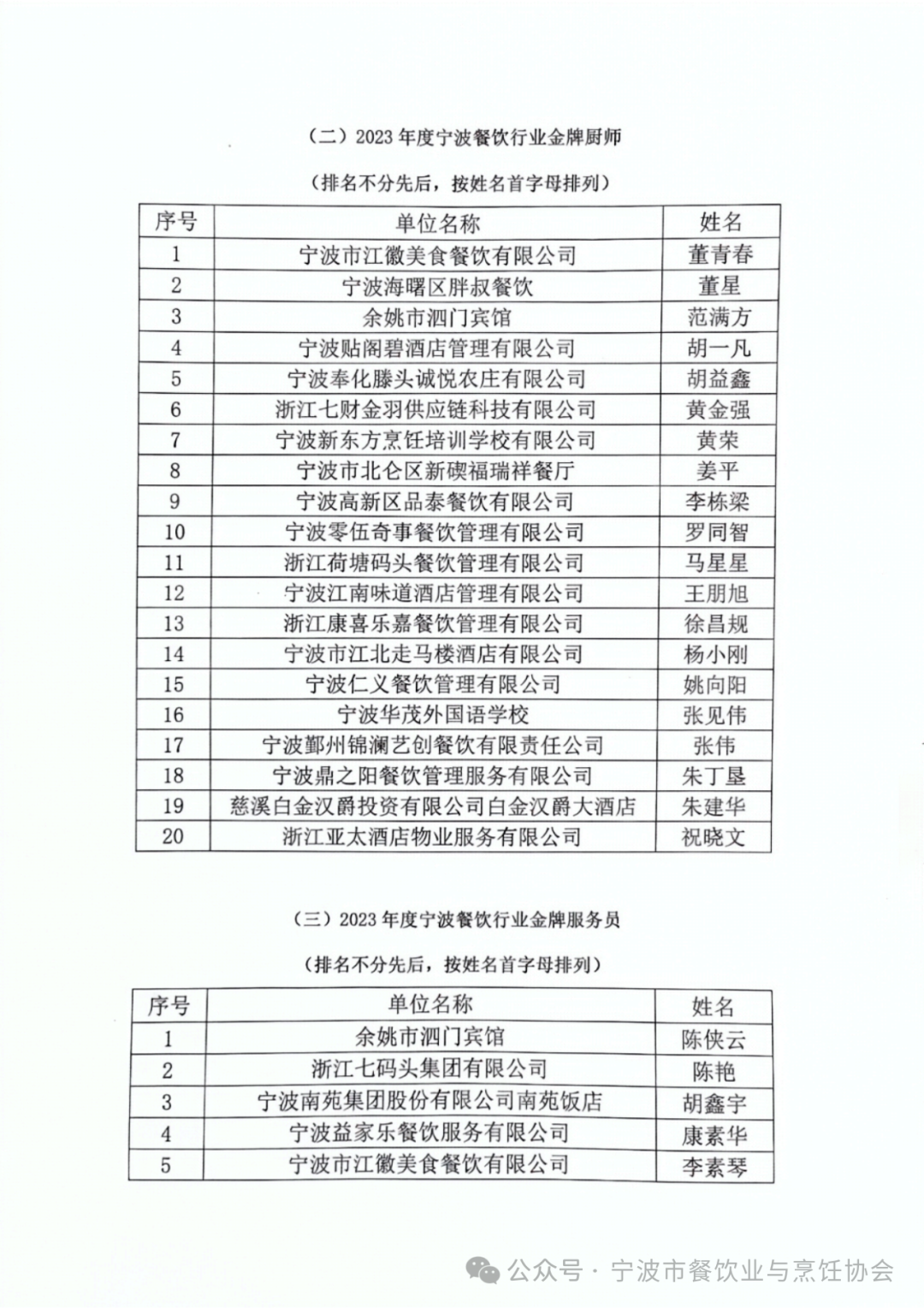 2023宁波餐饮行业评优活动表彰名单