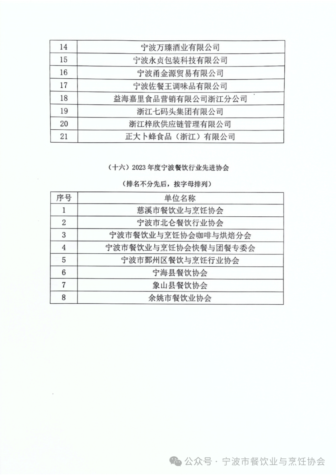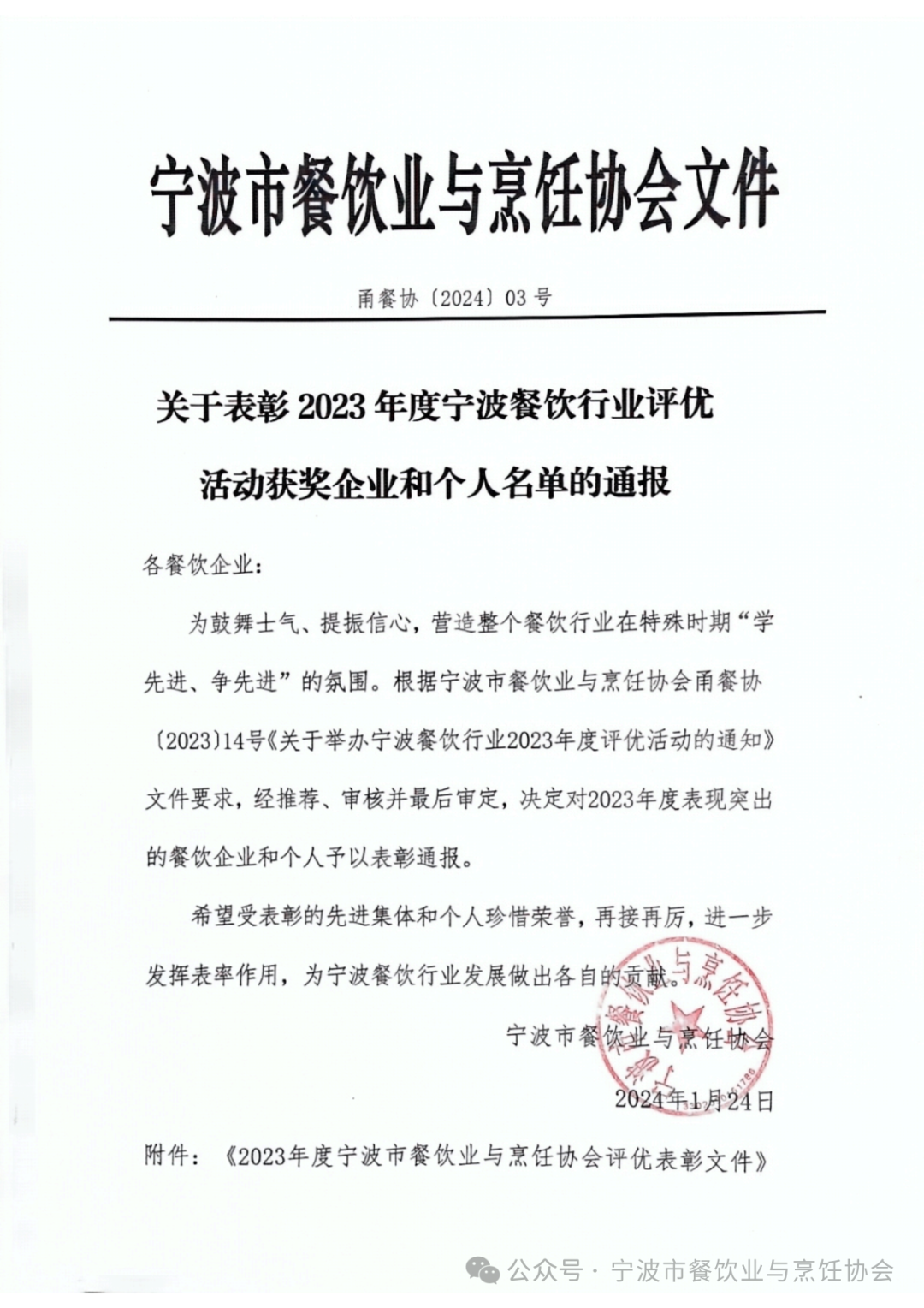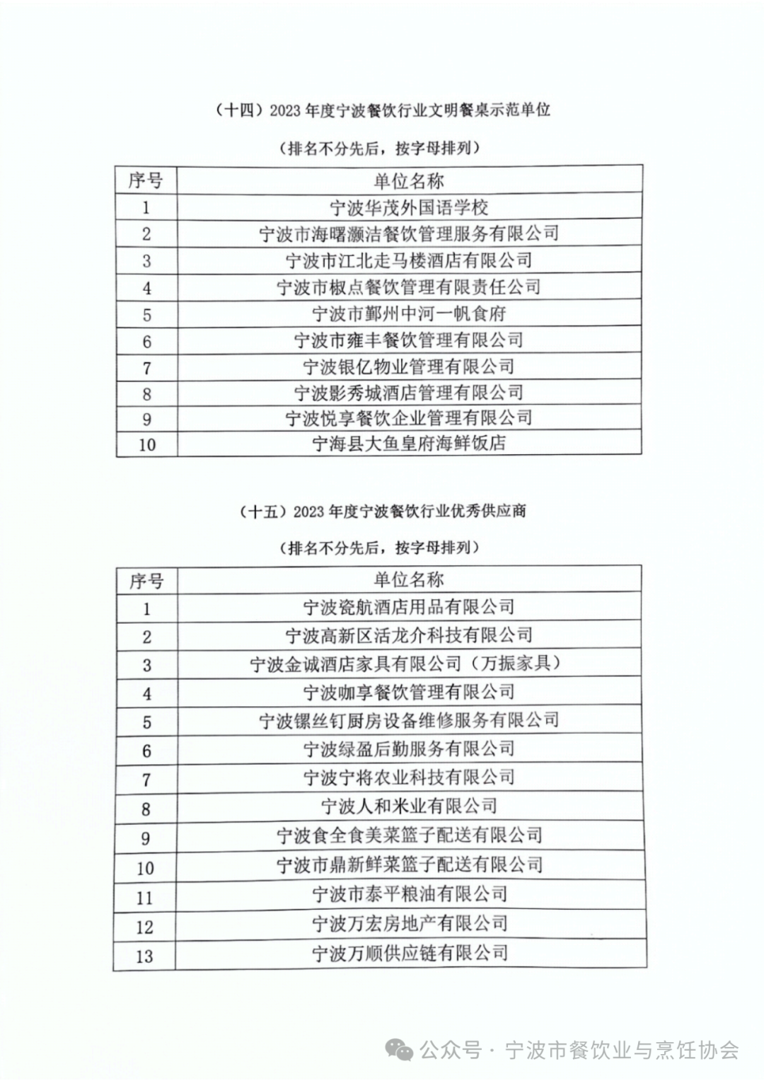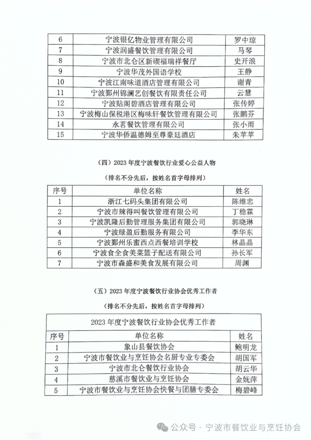 2023宁波餐饮行业评优活动表彰名单