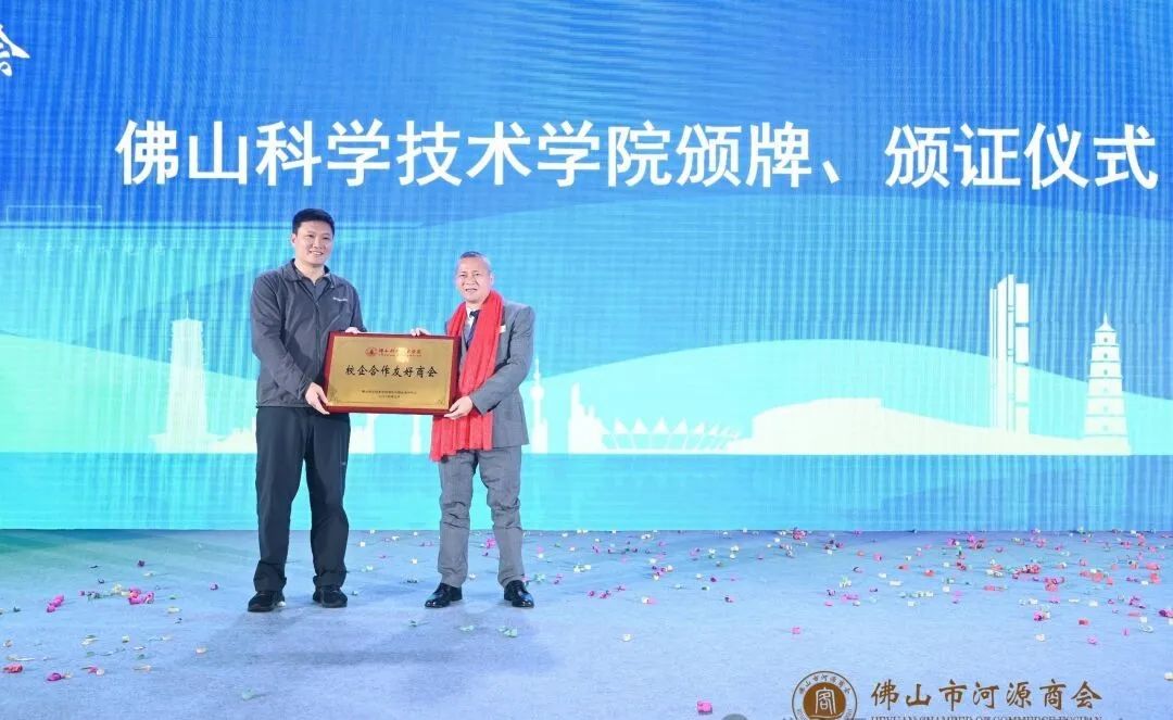 为进一步深化政校企合作,促进产业与人才供需精准对接,助力区域经济良好发展,在商会典礼台上,佛山科学技术学院与佛山市河源商会举行了校企合作授牌仪式。佛山科技学院副书记钟飞健还向现场三位企业家颁发了校外就业创业导师。