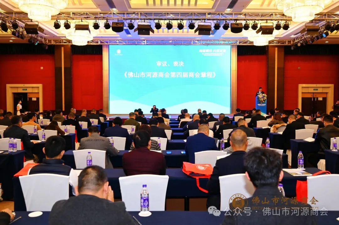 在就职典礼之前,召开了佛山市河源商会第四届全体会员大会第一次会议,大会审议通过了彭文艺作第四届商会筹备报告、党支部书记黄国城作党支部工作报告、财务部部长蓝高辉作财务报告、商会第四届《章程》、无记名选举通过了第四届商会领导班子名单等等。监事长邱江挺并为第三届商会先进名单进行了表彰。