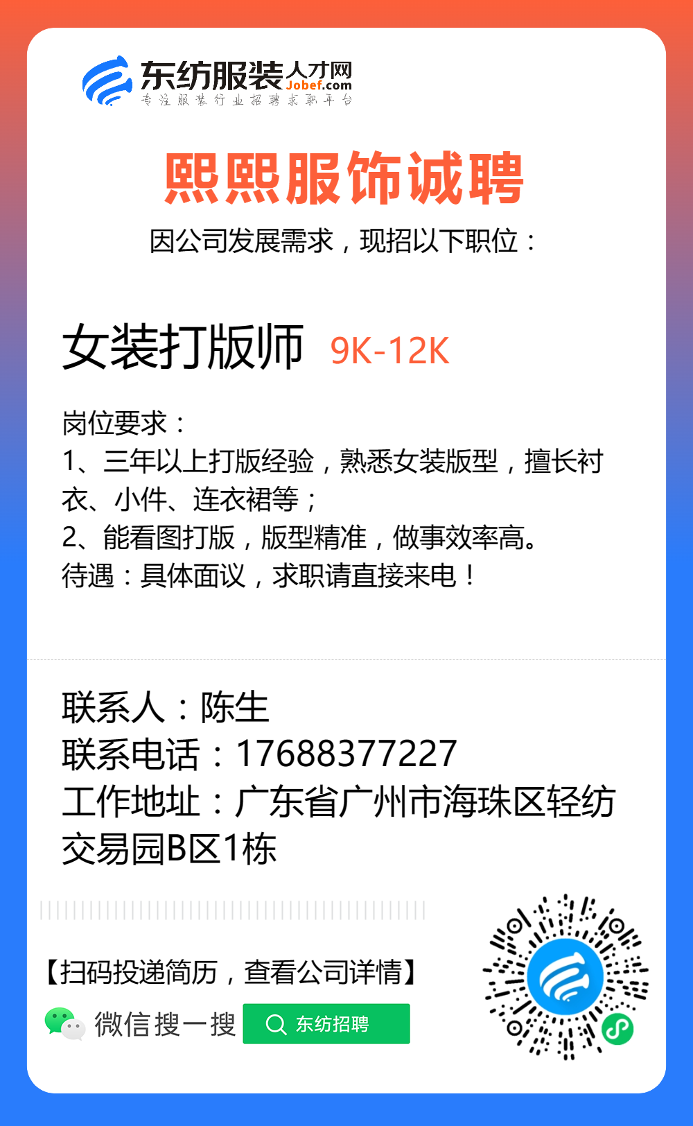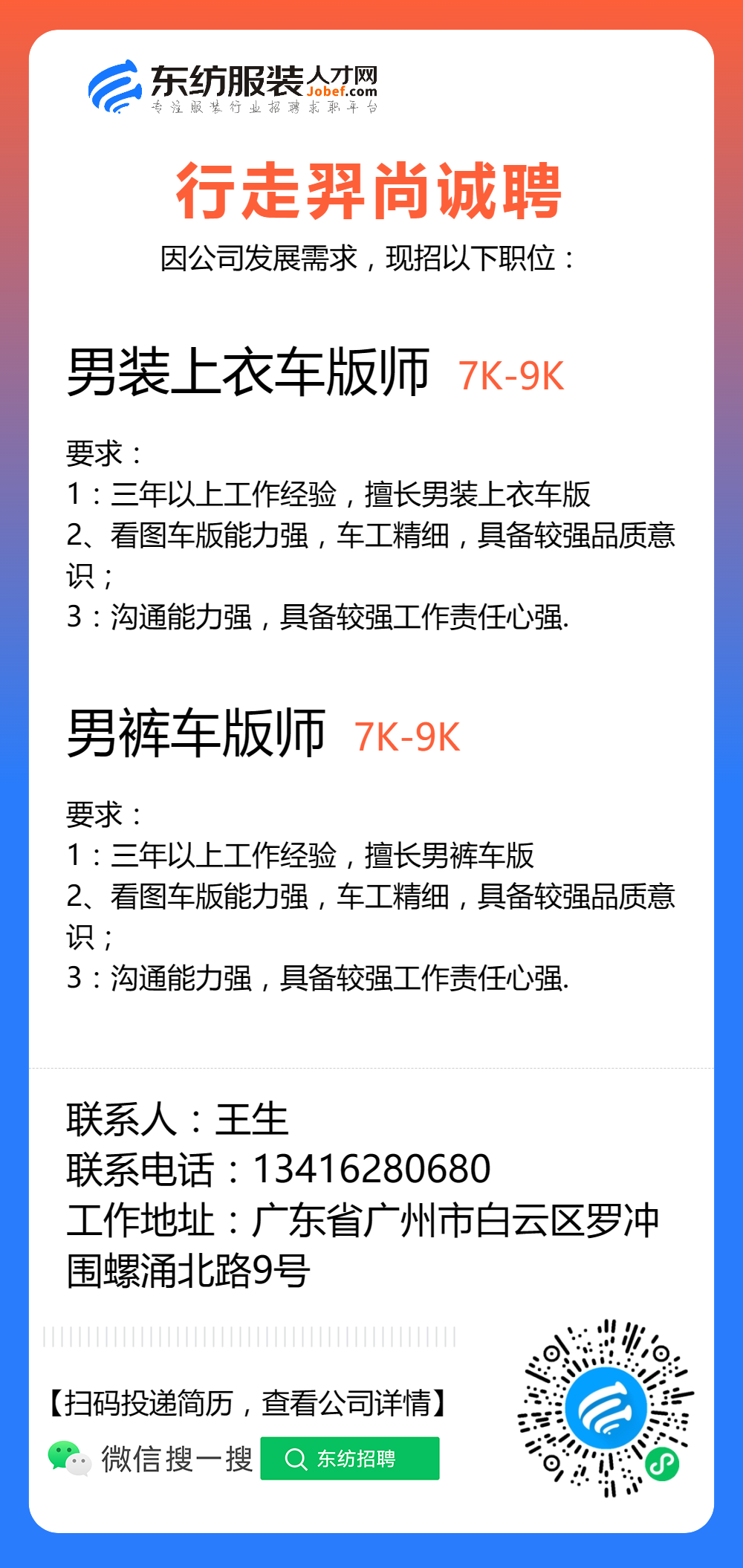 服装招聘·技术类丨3. 13号,打版师、车版师……