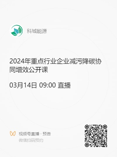 为助力重点行业企业绿色低碳发展,推动实现减污降碳扩绿增长,在山西省生态环境监测和应急保障中心(山西省生态环境科学研究院)指导下,山西科城能源环境创新研究院计划于3月14日(本周四)9:00-11:00,面向煤电、钢铁、焦化、建材、化工等重点行业企业举办公益公开课,重点围绕企业全过程环境管理、危险废物规范化管理、企业碳排放核算等内容进行讲解,扫描下方二维码即可预约观看直播。