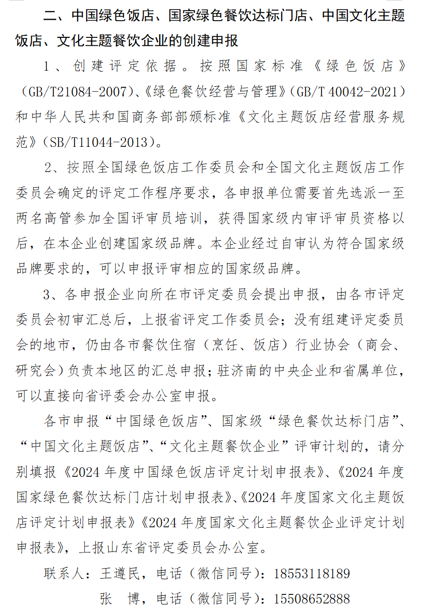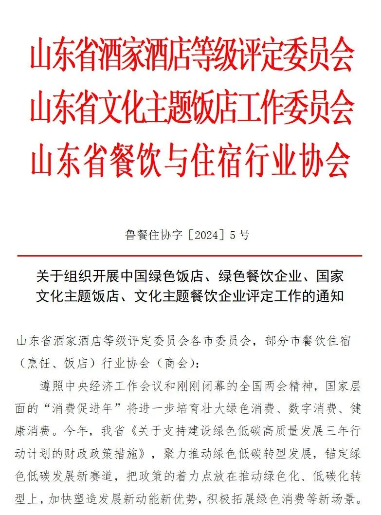 关于组织开展中国绿色饭店、绿色餐饮企业、国家文化主题饭店、文化主题餐饮企业评定工作的通知