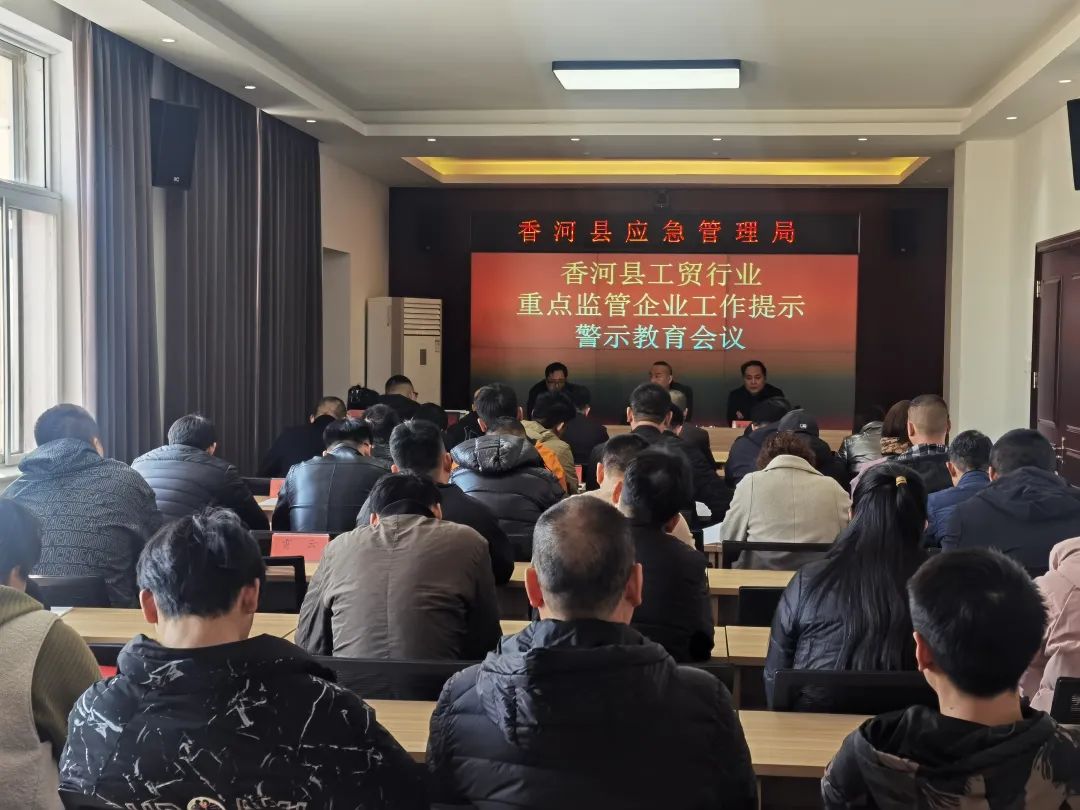 为深刻汲取事故教训,进一步加强重点工贸行业安全监管,压紧压实企业主体责任,防范和化解安全风险,3月13日,香河县应急管理局组织召开了工贸行业重点监管企业工作提示警示教育会议。全县重点企业主要负责人、安全管理人员参加会议。县应急局党委副书记、副局长屈文杰同志,副局长董连宇同志出席会议。