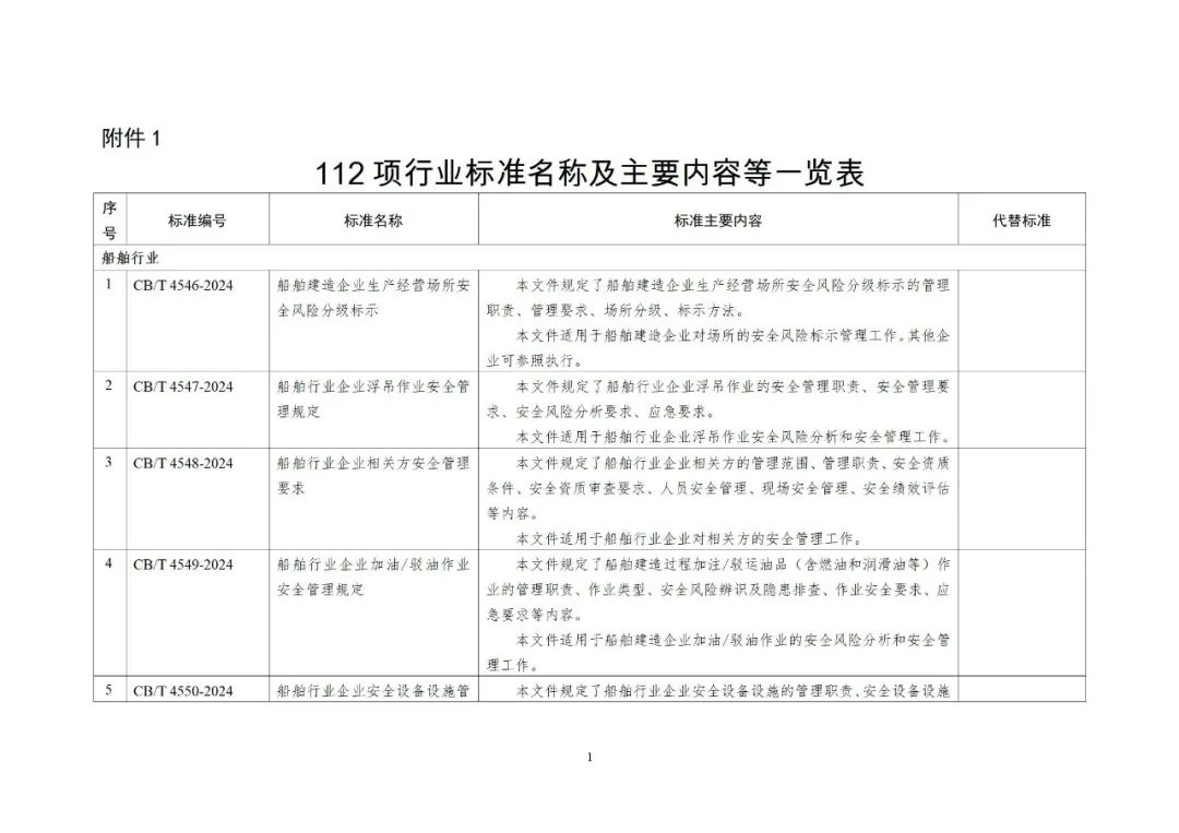 附件:1. 112项行业标准名称及主要内容等一览表