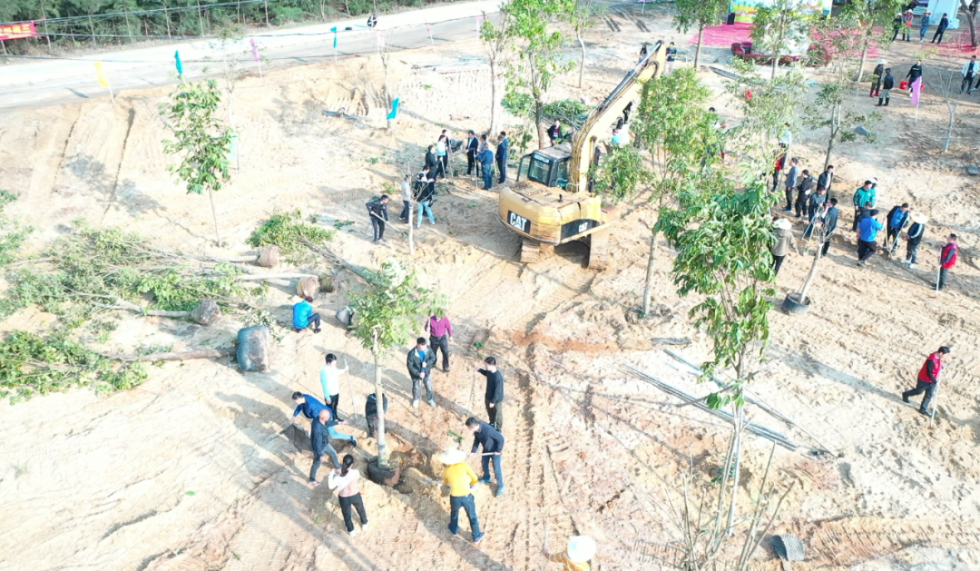 在“商会林”植树现场,参加活动的领导嘉宾共同为“商会林”揭幕,邓观福为活动致辞,坡头区委书记陈景泰宣布活动正式启动。大家热情高涨,配合默契,一起挥锹挖土、扶苗填坑、提桶浇水、干劲十足,现场一片热火朝天的繁忙景象。经过一番劳作,大家携手共同种下梧桐树、菩提树、黄花风铃木等树苗,为建设美丽宜居南三再添一抹新绿。