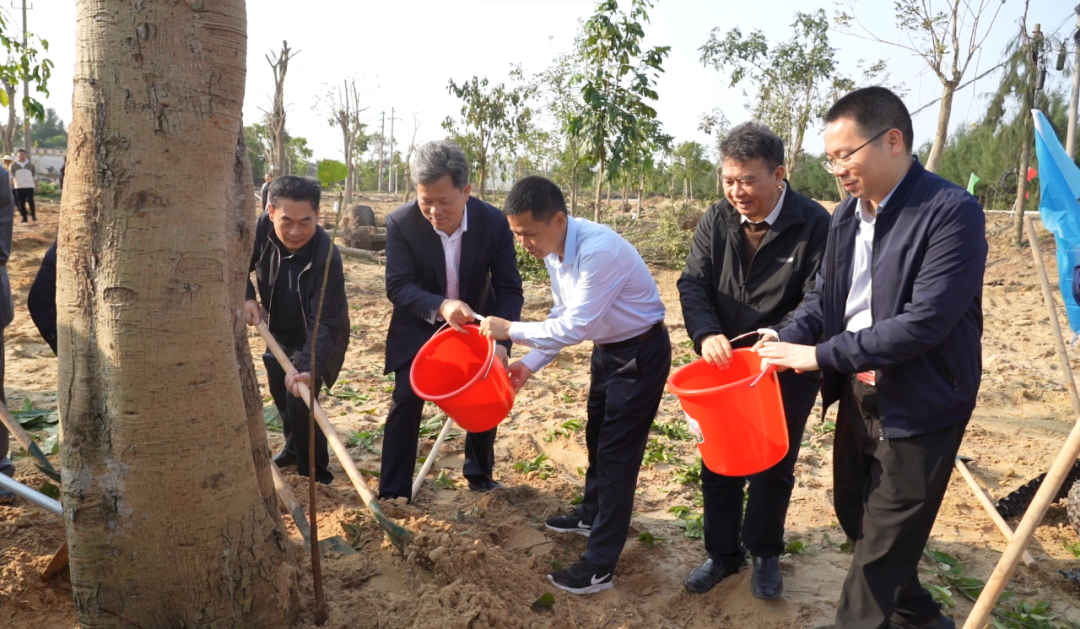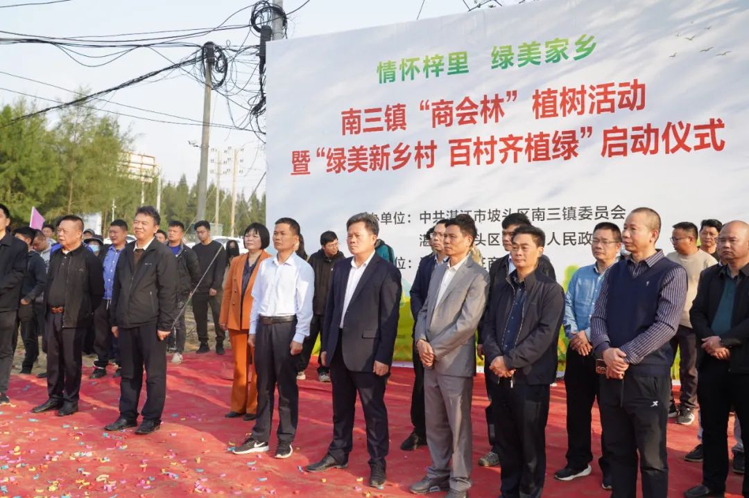 阳春三月,万物复苏。3月12日植树节当天,湛江市坡头区南三林场热闹喜庆非凡,深圳市南三商会在此举行“商会林”基石奠基暨“情怀乡梓 绿美家乡”植树活动启动仪式。坡头区领导陈景泰、黄哲辉、全汝昌、许小鹏、詹学广、陈三永及区检察院检察长陈伟、深圳市南三商会会长邓观福等出席活动。坡头区直相关单位领导、南三镇委镇政府班子领导及干部职工、南三镇各村(居)委会干部、深圳市南三商会会员代表、南三林场全体员工及乡贤代表等200余人参加了活动。