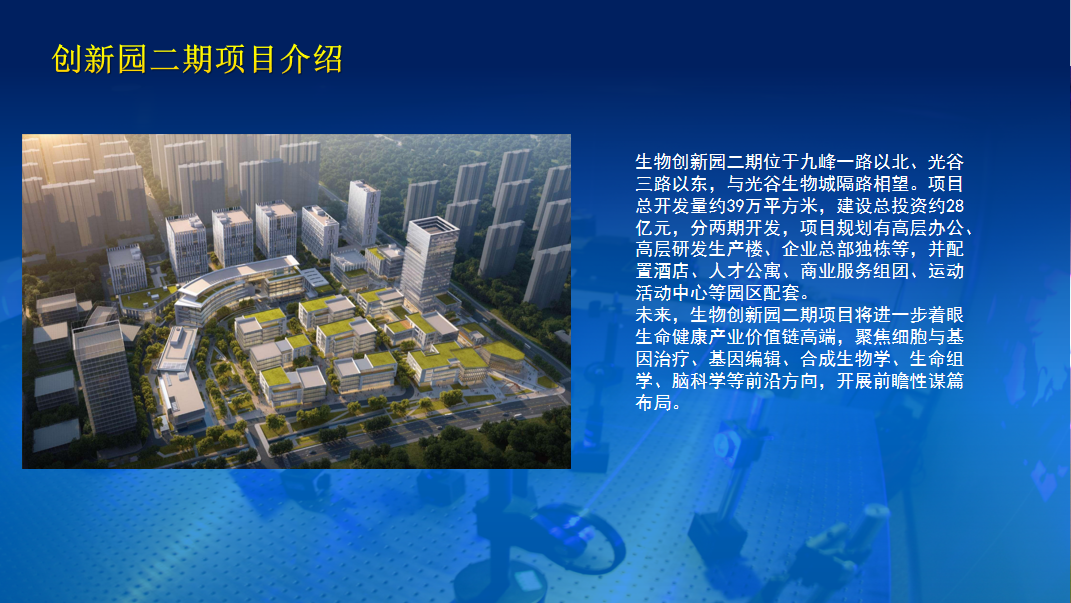 本次会议中,生物城主任丁慧琛对我司旗下生物创新园二期和前沿生物技术产业生产基地项目进行了推介。