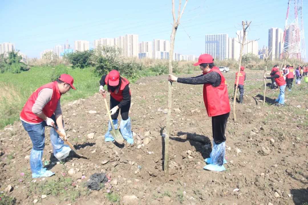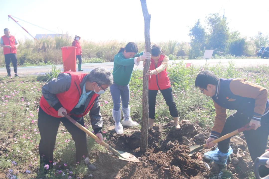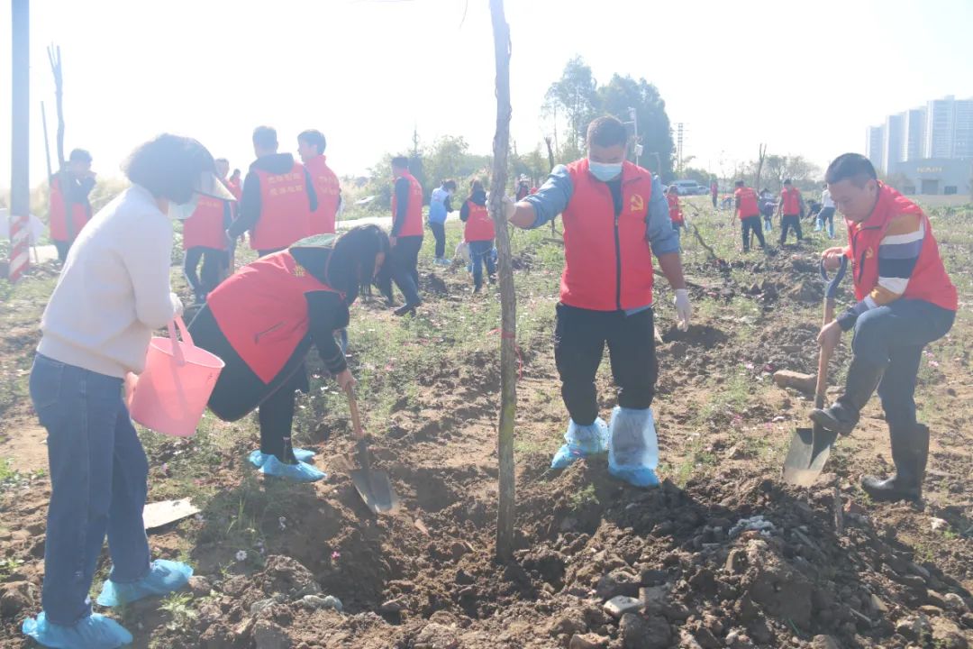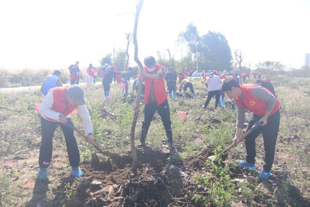 植树现场热闹非凡,大家齐心协力挥锹挖土、搬苗扶苗、培土浇水……政社企共同携手,为大地添绿,一起绘就春日里最美的风景线。