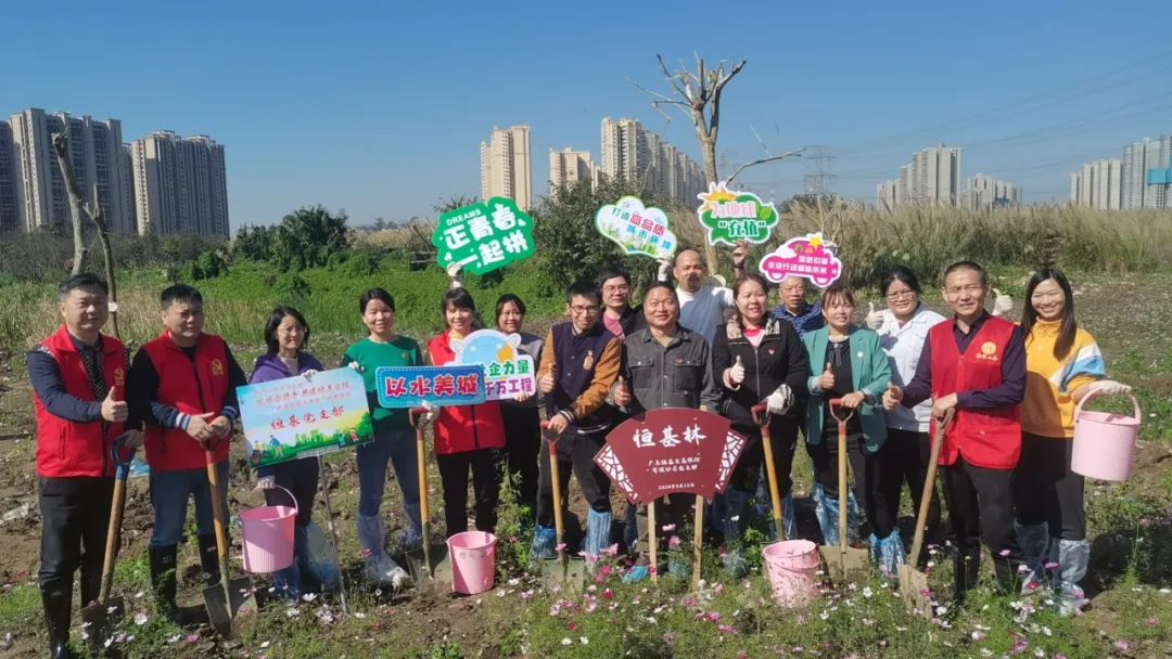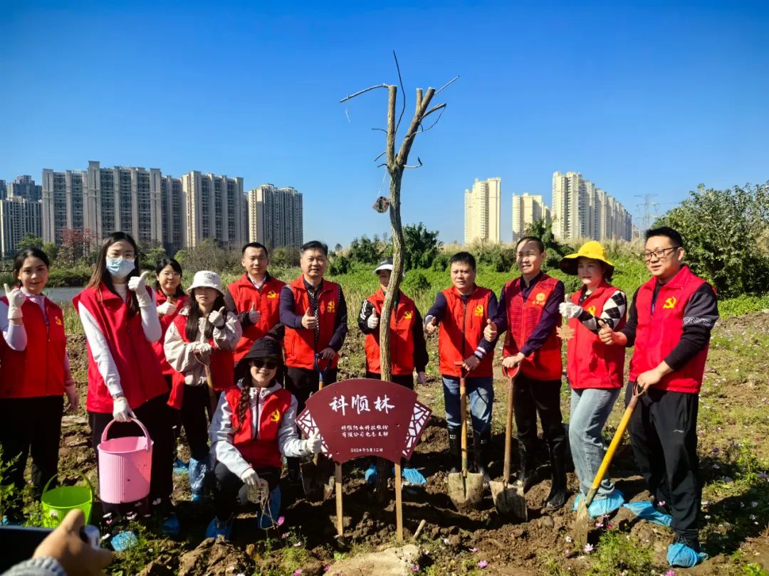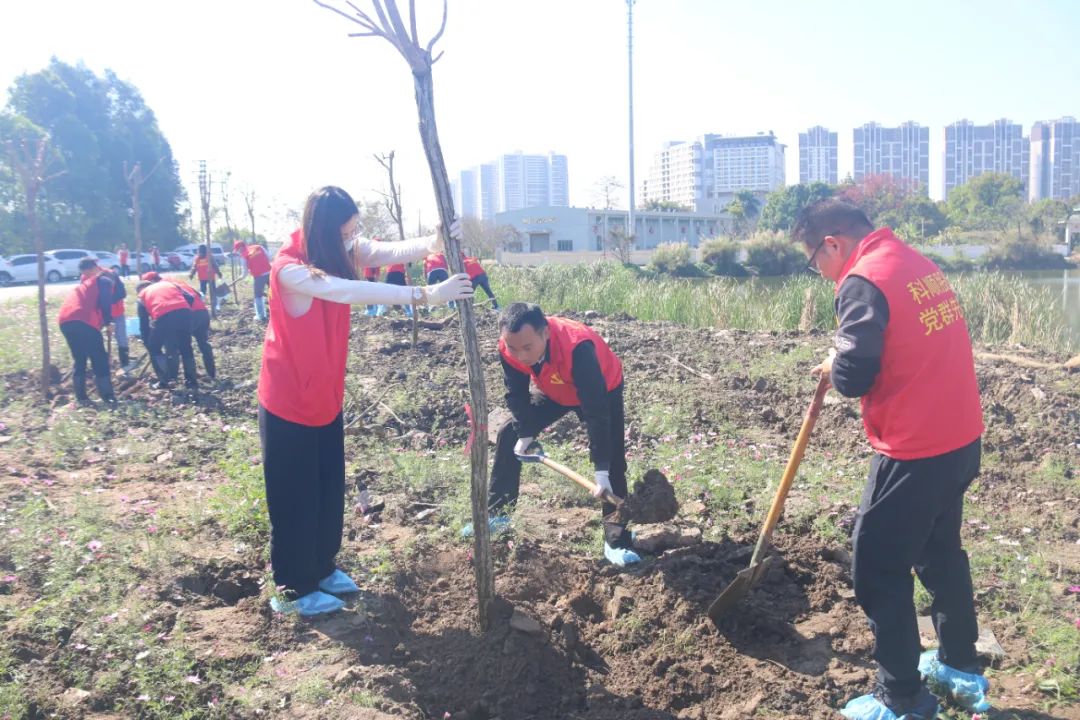 3月12日上午,容桂街道经济发展办公室党委与高黎社区党委在洪奇沥水道东堤路堤内地块,以植树节为契机,组织开展助力“百千万工程”·政社企携手,共建绿美容桂——“我为容桂添片绿”植树活动。