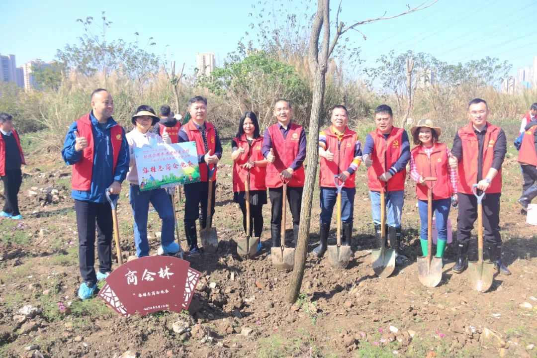 大家齐心协力,共同种植了“商会林”、“德怡林”、“科顺林”、“恒基林”、“必达林”等12片林区,为容桂大地增添一抹盎然绿意。