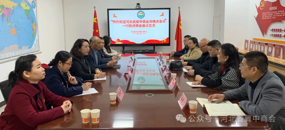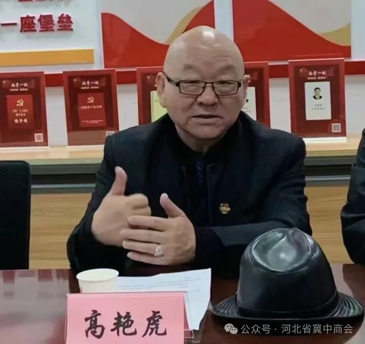 河北省冀中商会会长高艳虎就商会和党建工作基本情况、服务会员、内部建设、招商引资、对外交流以及当前开展工作等进行详细介绍,并提出了像走亲戚一样加强互动联动和沟通交流,共同推进兄弟商会高质量发展。
