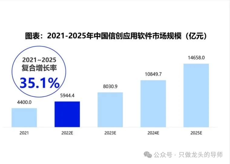 2025年我国信创产业规模有望突破2万亿,而应用软件是信创市场中占比最大的环节,约占行业60%-65%。预计到2025年将达到1.5万亿元