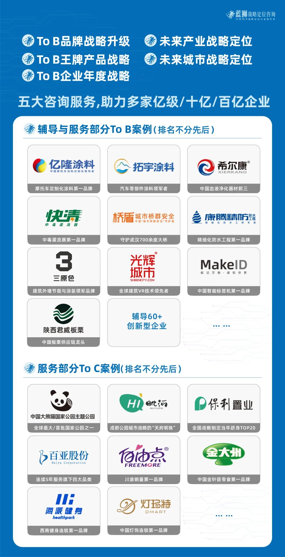 蓝狮战略定位咨询专注于服务To B领域的科技型企业与专精特新中小企业,近期将成立8年举办32期的“重庆品牌定位沙龙”升级为“科技品牌定位沙龙”,并推出“重庆科技品牌研讨会”,以深度调研 + 1V1闭门研讨的形式,助力科技型企业和专精特新中小企业,成为心智首选,成为第一品牌。