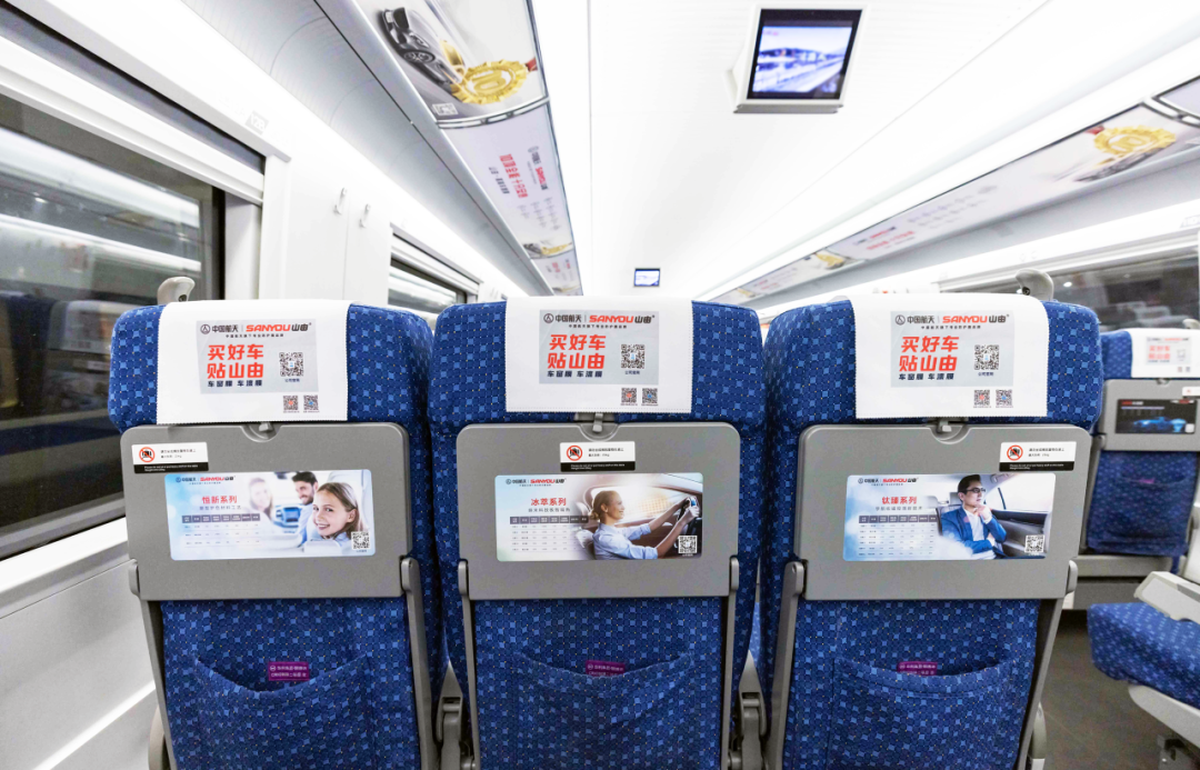 此外,航天山由还携手华铁传媒共同打造高铁冠名列车,同时投放复兴号高铁列车头片媒体,将品牌核心内容与产品优势在头片、桌贴、品牌天幕、海报等多元化媒体上铺陈开来,强势彰显品牌形象。
