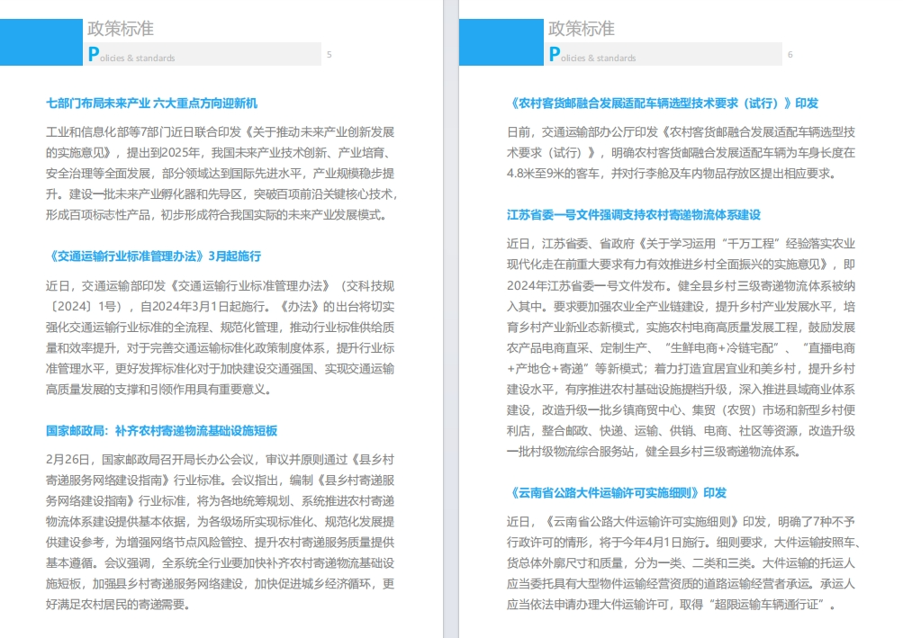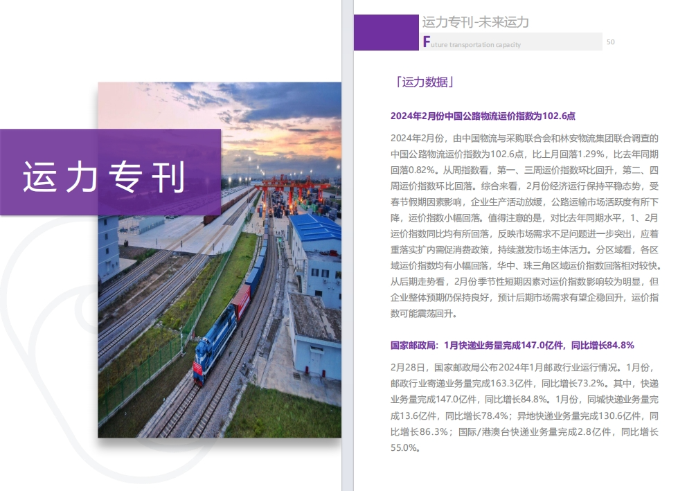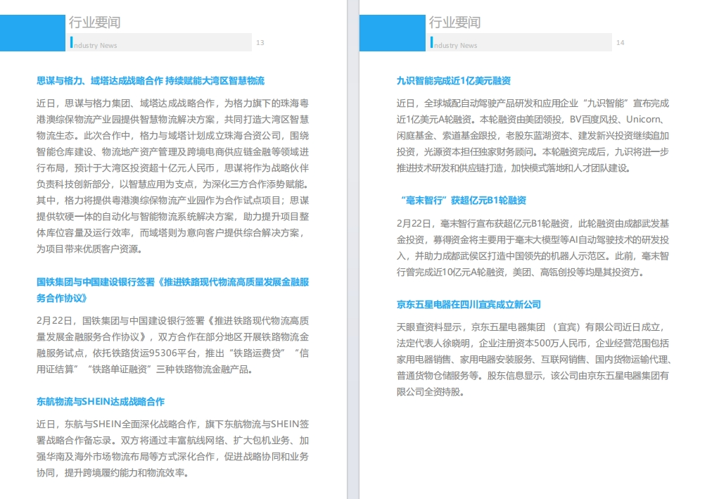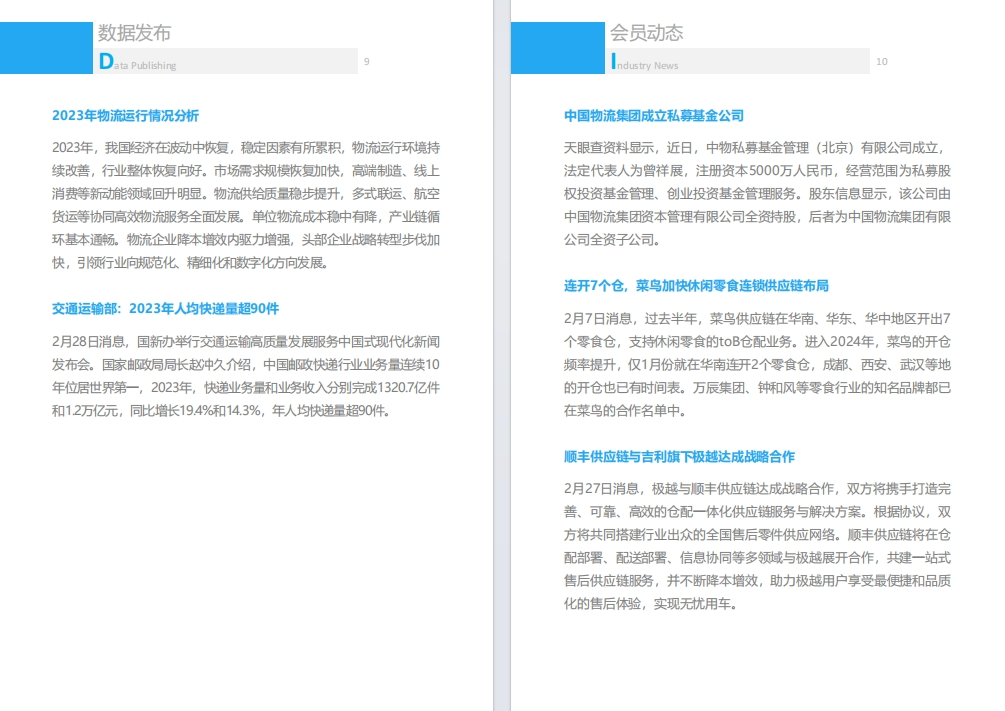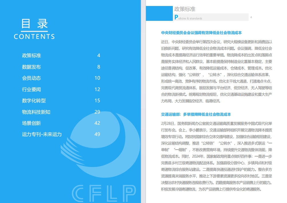 月刊涵盖2月政策标准、数据发布、会员动态、行业要闻、数字化转型、物流科技新知、场景创新、运力专刊-未来运力。